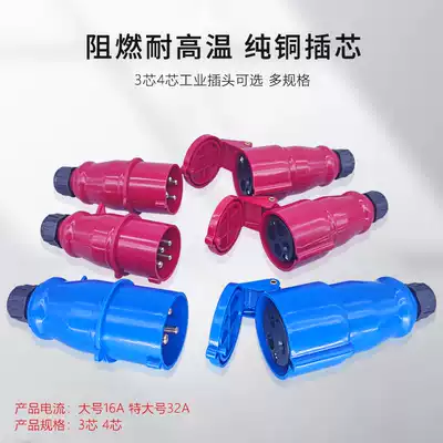 Waterproof industrial plug socket connector rainproof and flame retardant 3-4 core male and female butt screw wiring 32A nylon