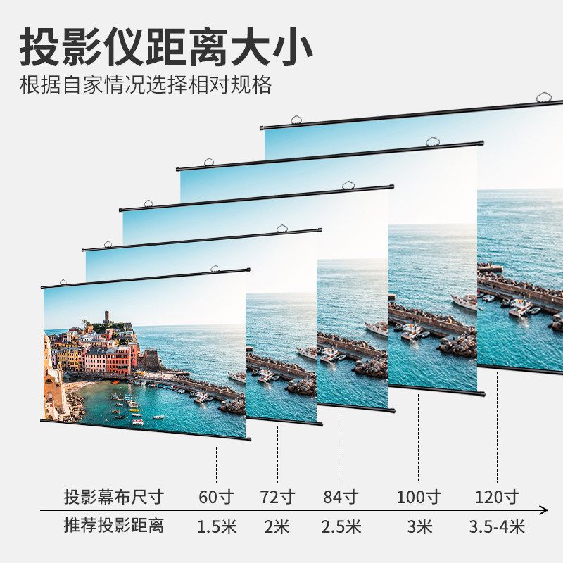 Suitable for extreme rice projection curtain cloth wall-mounted hook-free no-frame simple curtain cloth 60 72 84100 84100 inch manual portable patch wall mobile curtain suitable for extreme rice projection curtain