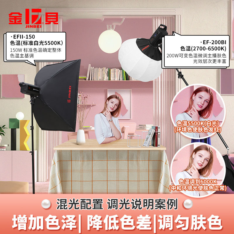Kimbe EF200BI double lamp set live LED double color temperature photography studio live broadcast