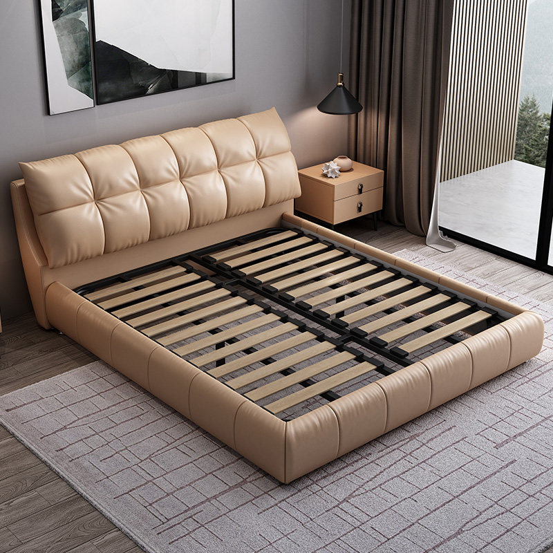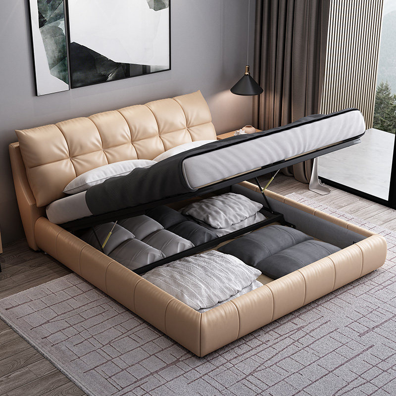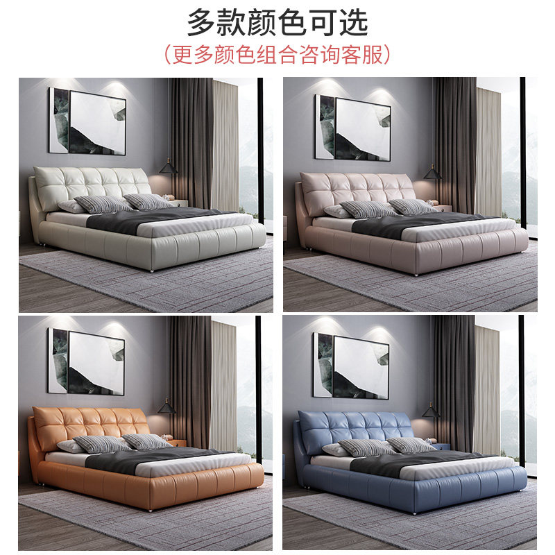 Leather bed modern minimalist master bedroom double bed wedding bed 1 8 meters queen bed 1 5 meters secondary bedroom with storage high box leather bed