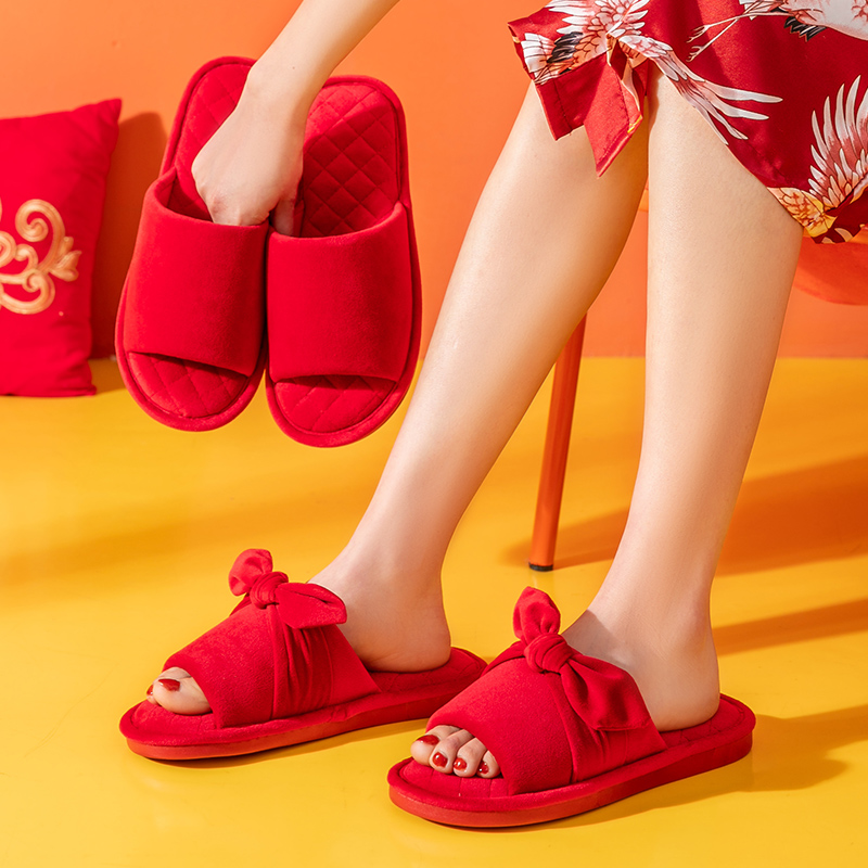 Buy one for a wedding cotton slippers Heqing red A couple weddings Wedding Celebration Newlyweds Cool Slippers female Spring and Autumn