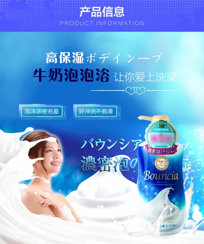Japan COW Milk stone base thick foam shower gel Moisturizing shower gel Milk Floral Rose 500ml
