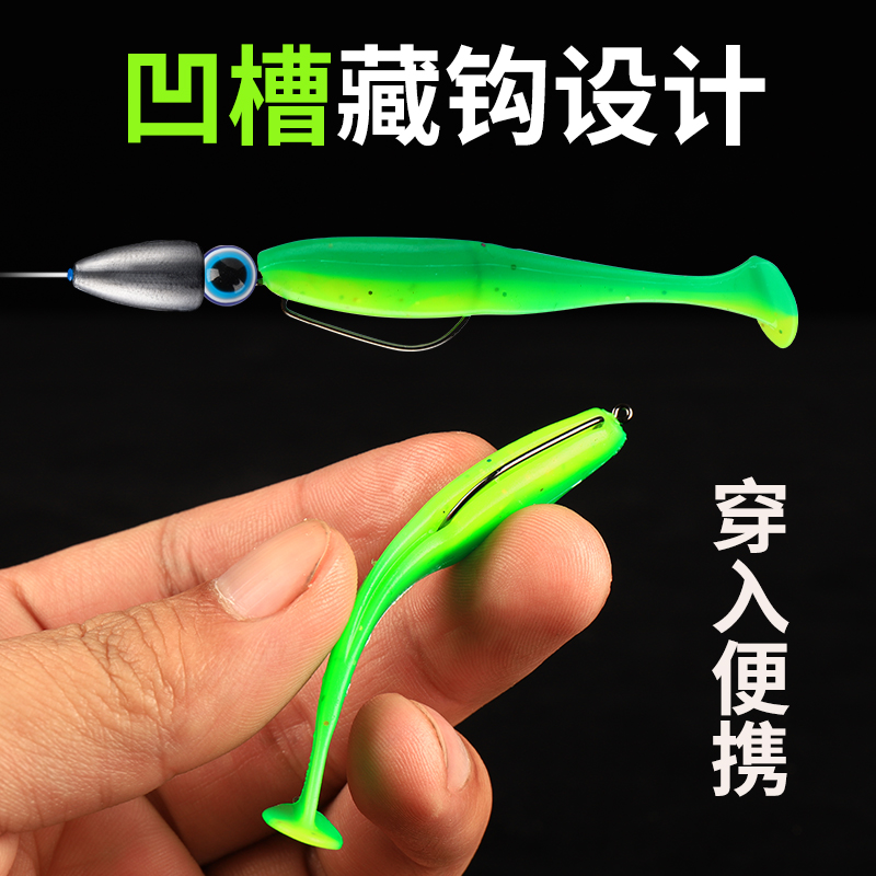 T-tail soft bait Luya fake bait 50 pieces of mandarin fish perch lead head hook soft insect micro-object far-throwing fake bait set