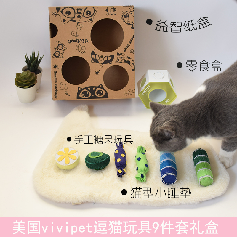 American Vipipet Cat Toy Self-Hi-Stifling Ball Suit Combined Fish Bite-resistant Tooth Grinding with mint corrugated cardboard box