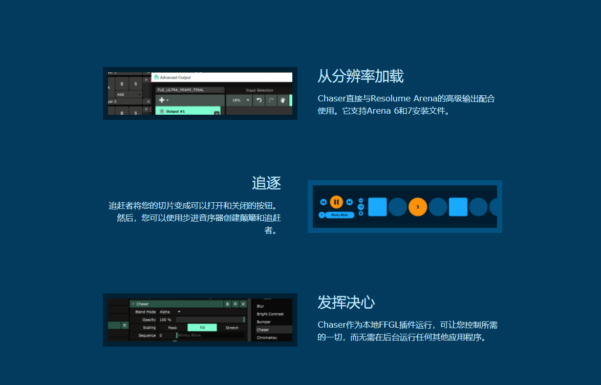 chaser running screen plug-in support version of Resolume Arena7 remote one machine one code stageFlow