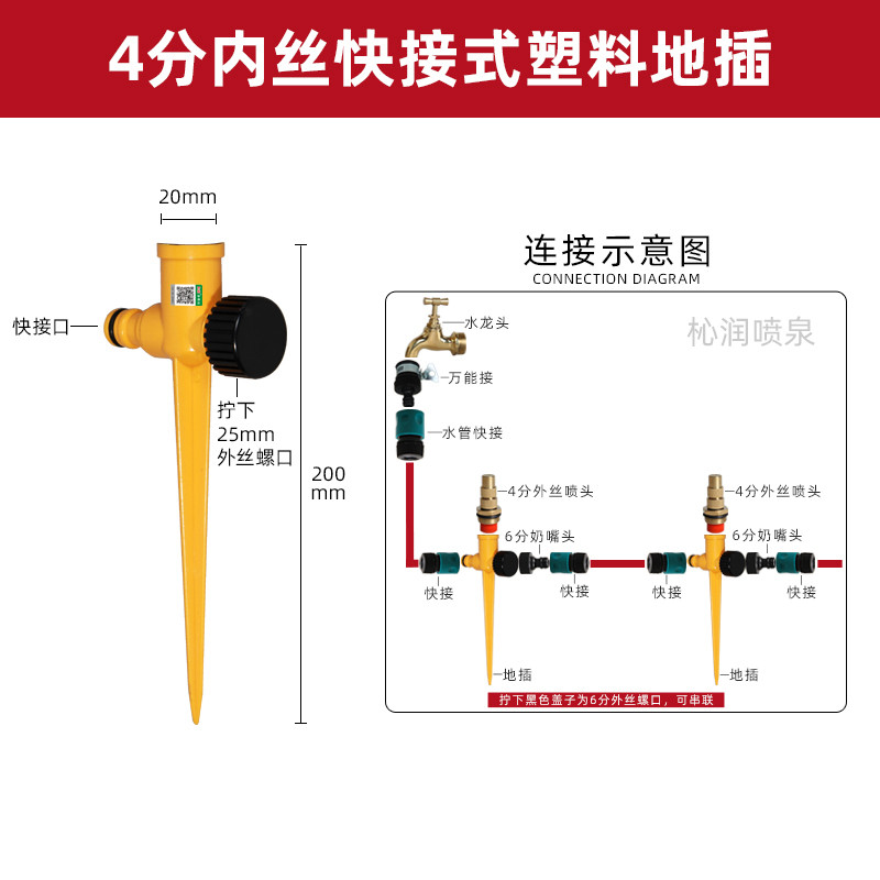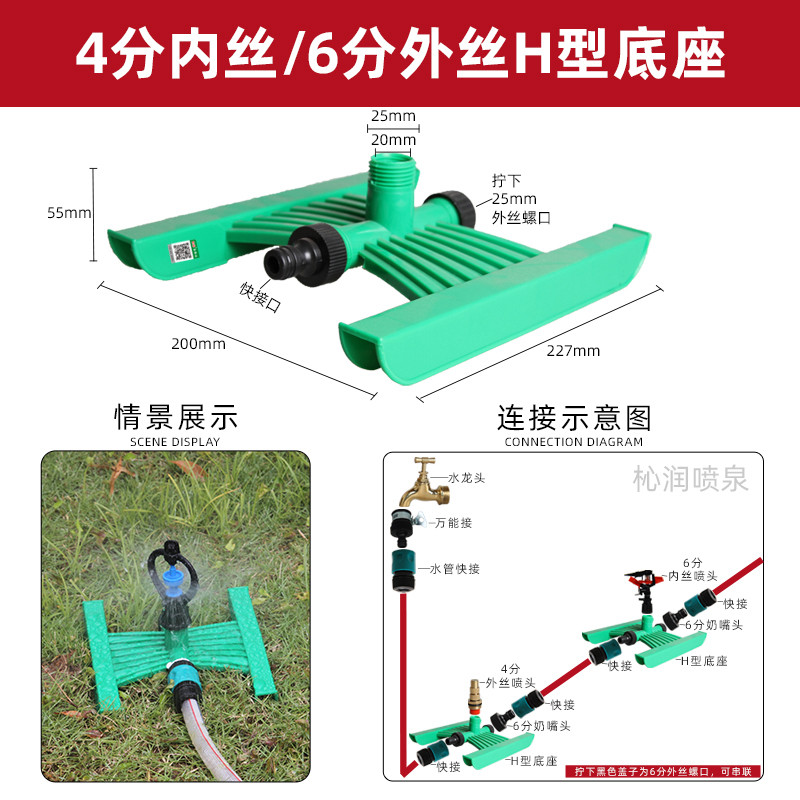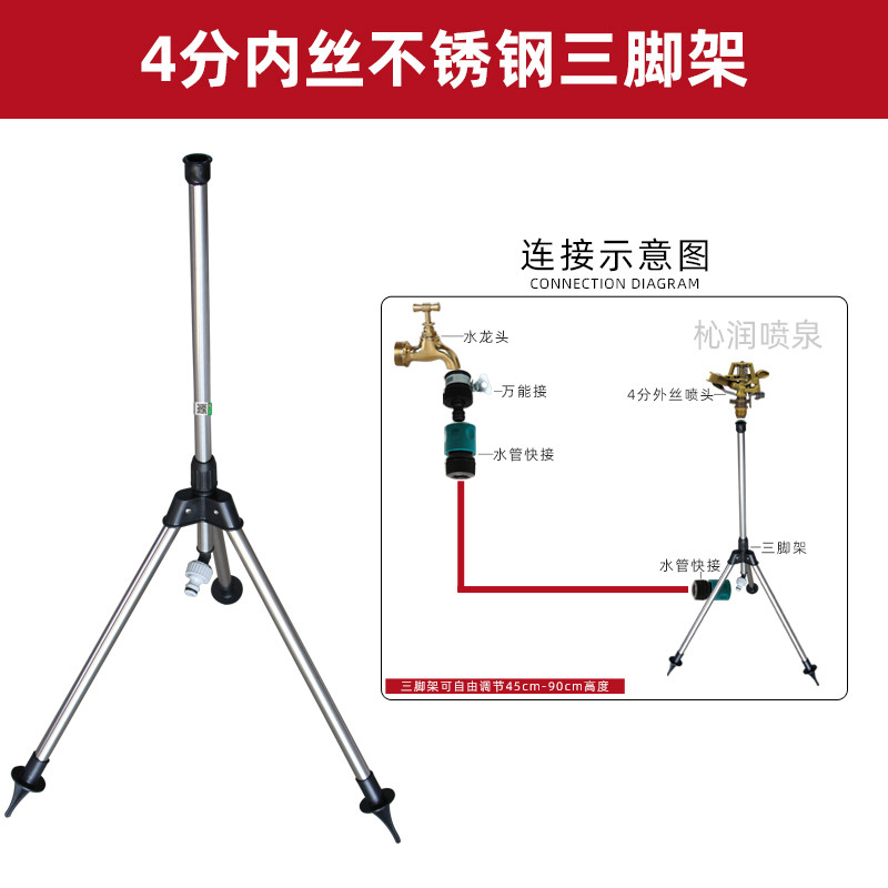 Garden watering lawn nozzle plastic alloy ground insert stainless steel tripod green watering cooling base bracket