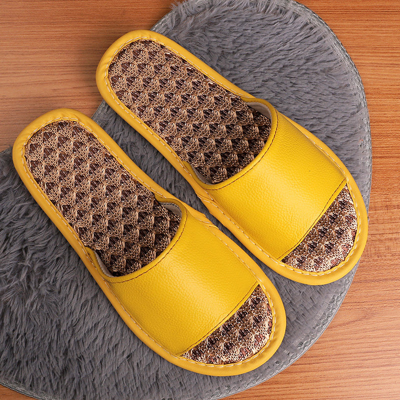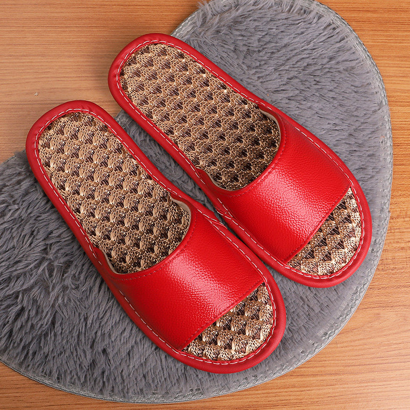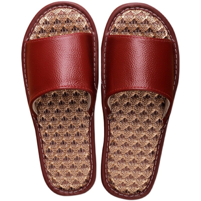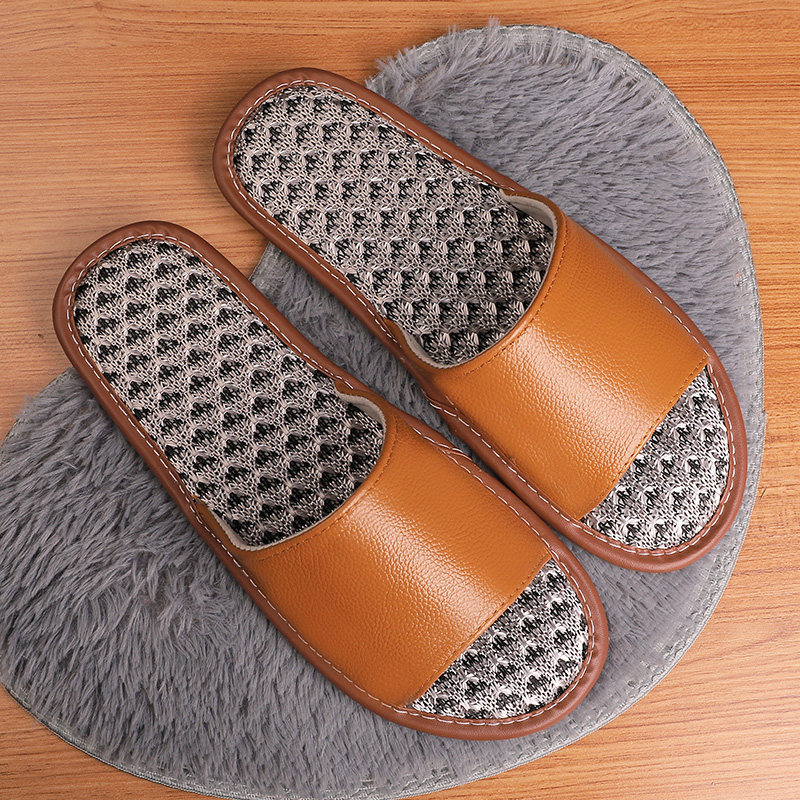 Summer ice silk genuine leather sandals women's home with bedroom lovers non-slip and sweat without foot smells muted slippers
