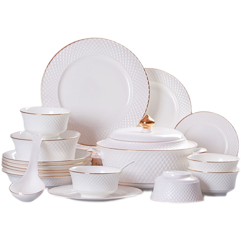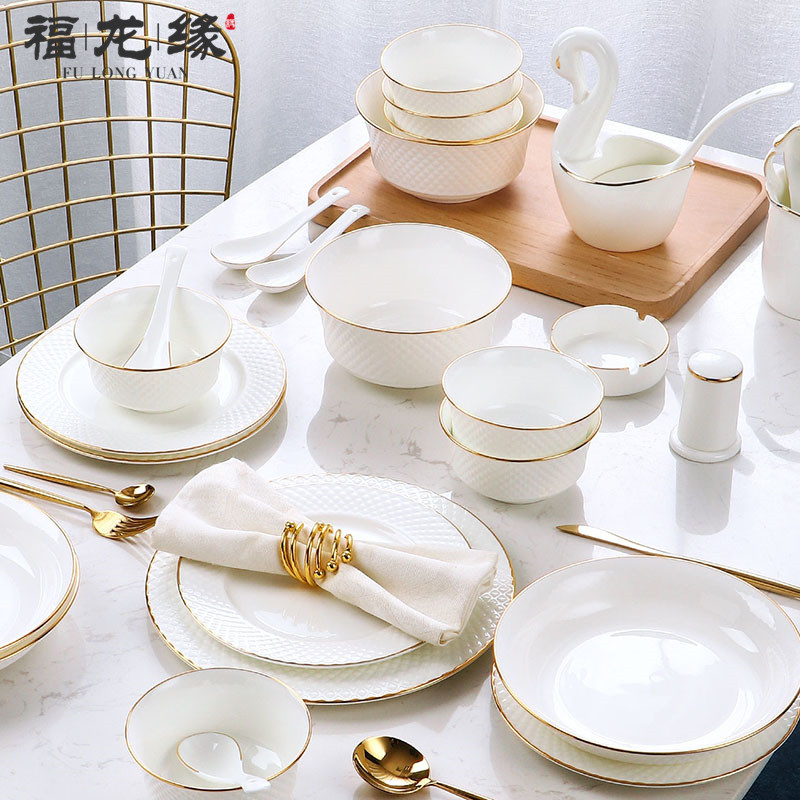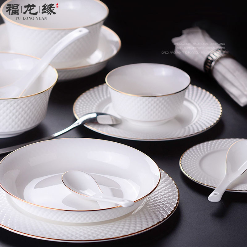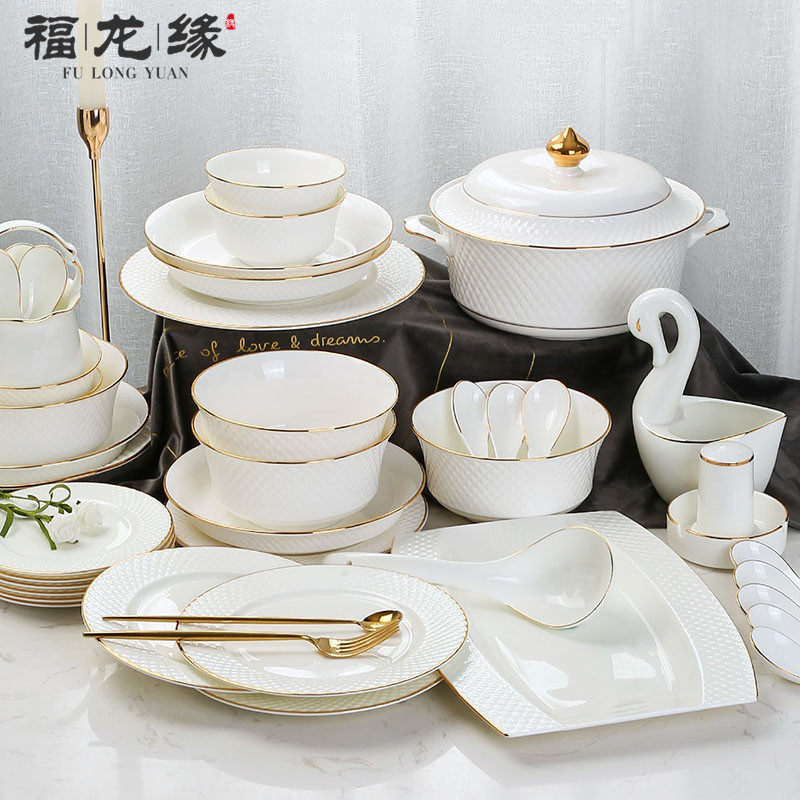 Fulongyuan Bone China Tableware Set Bowls and Plates Household High-grade Light Luxury Tableware Bowls and Chopsticks Phnom Penh Inlaid Ceramic Set Gift Box