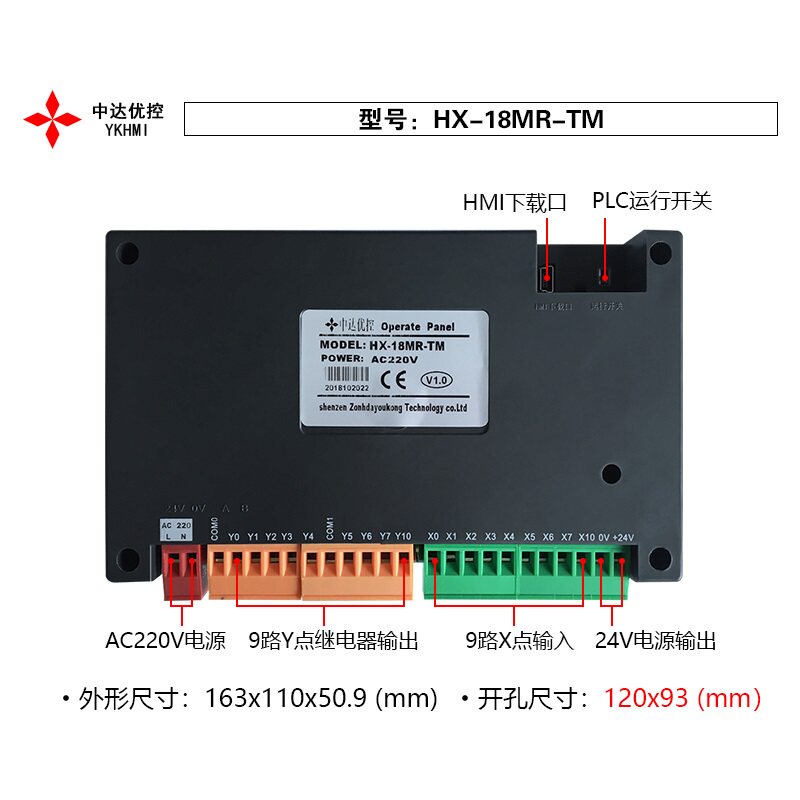 HX-18MR-TM Zhongda Excellent Control YKHMI text display PLC all-in-one machine 220V power supply 9 in 9 out