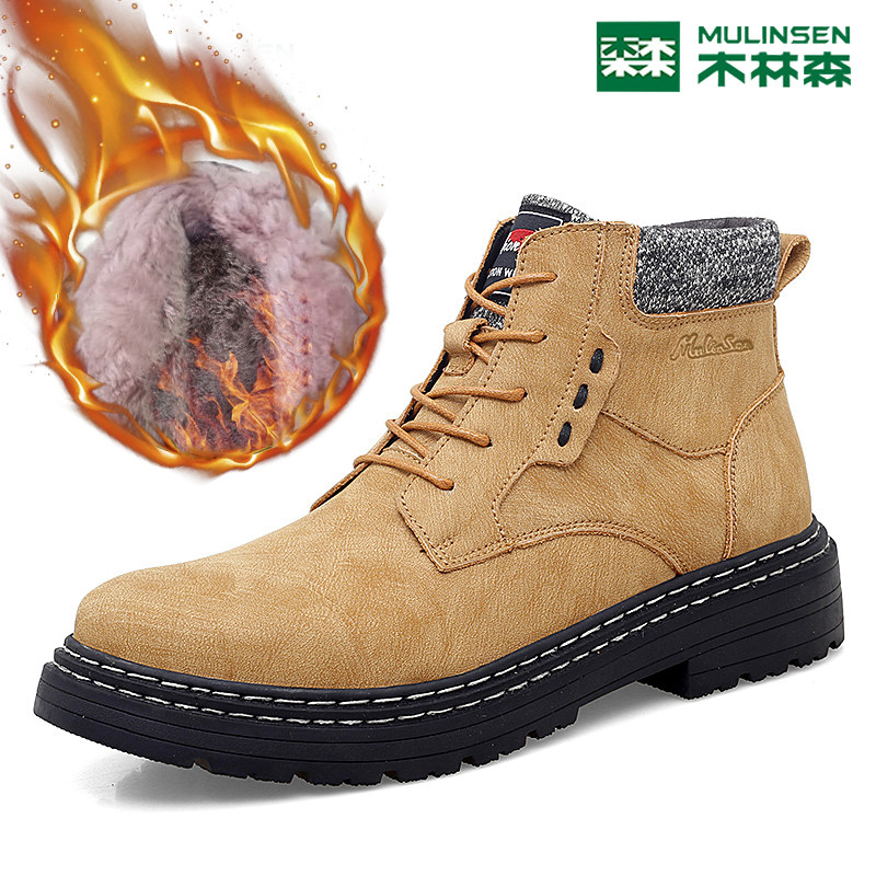 Mulinsen spring and autumn men's high-top shoes men's leather casual short boots thickened warm cotton shoes non-slip Martin boots leather shoes