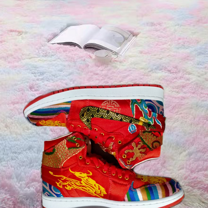 AJ1 wedding shoes red custom 21Kcustom Chinese style silk custom skin change diy private custom wedding shoes