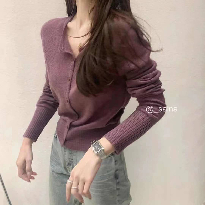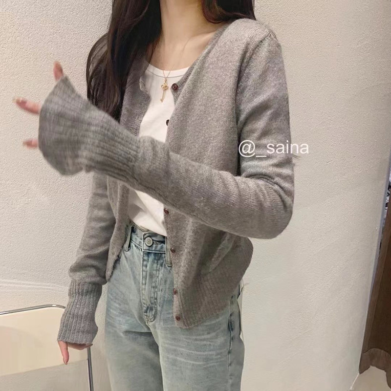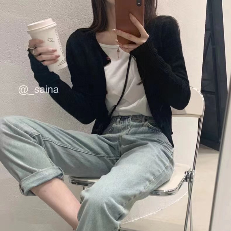 All-match sweater jacket women 2022 spring new long-sleeved mohair sweater milk sweet top short cardigan
