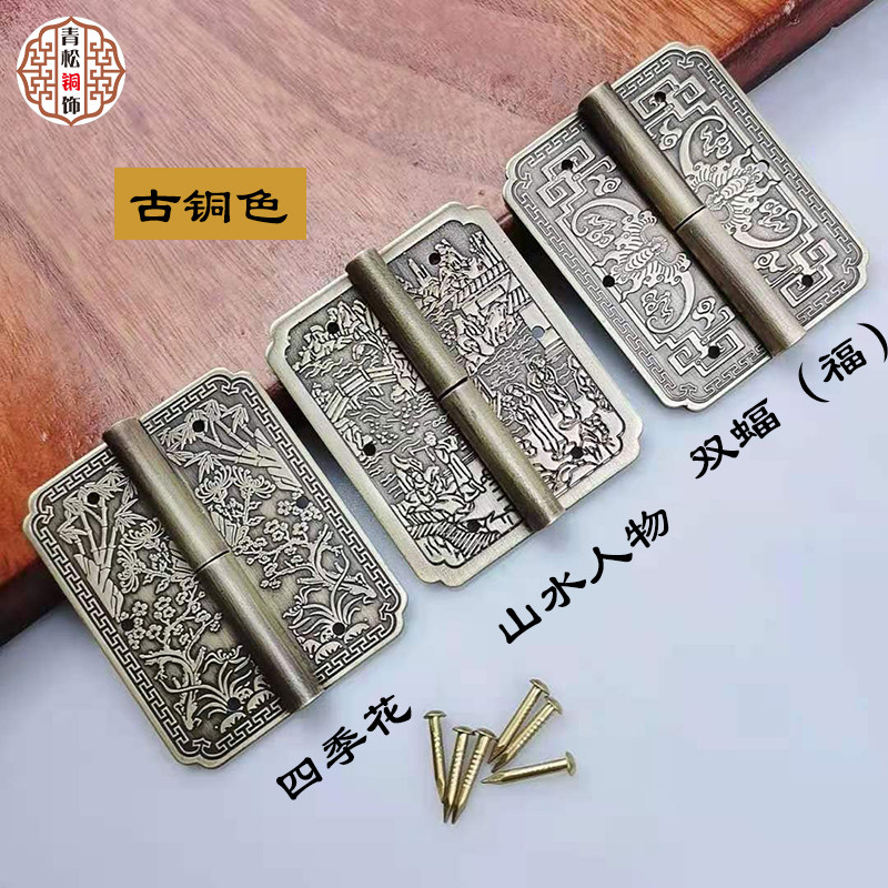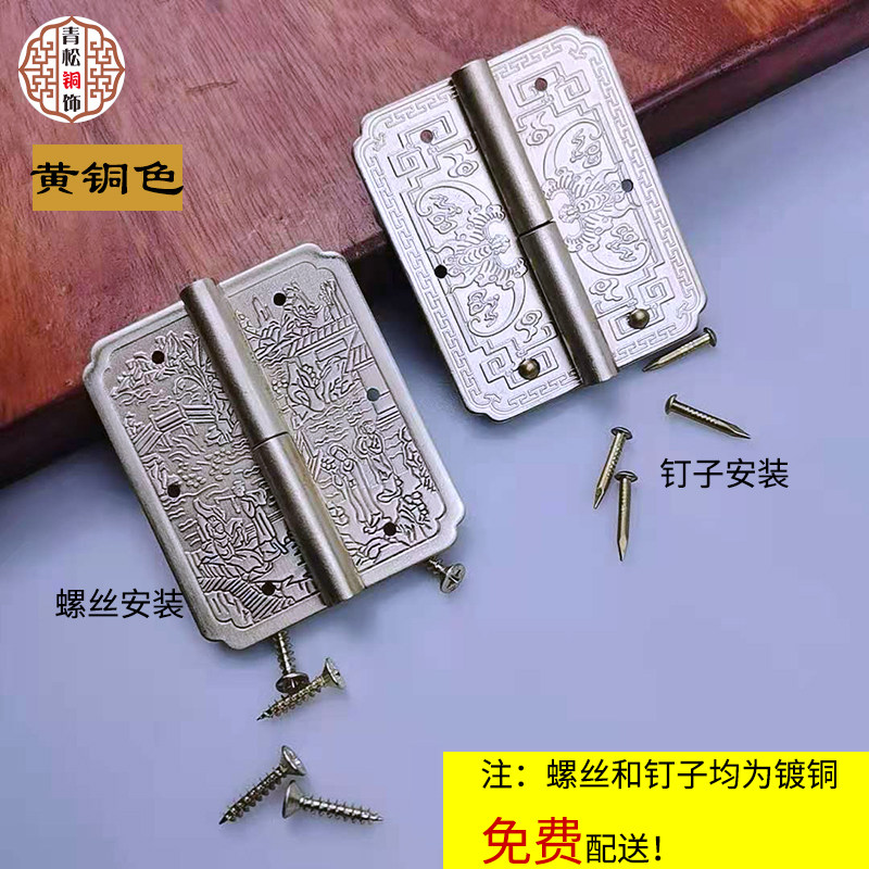 Chinese Ming Qingqing Classical furniture Copper Hinge Imitation Antique Screen Pure Bronze Small Folding Page Overall Closet Cabinet Door Detachable Pure Copper Hinges