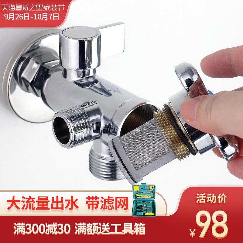 Diving boat smart toilet corner valve with filter screen All copper 10% 2 4 to turn 6 Sub-toilet special large flow