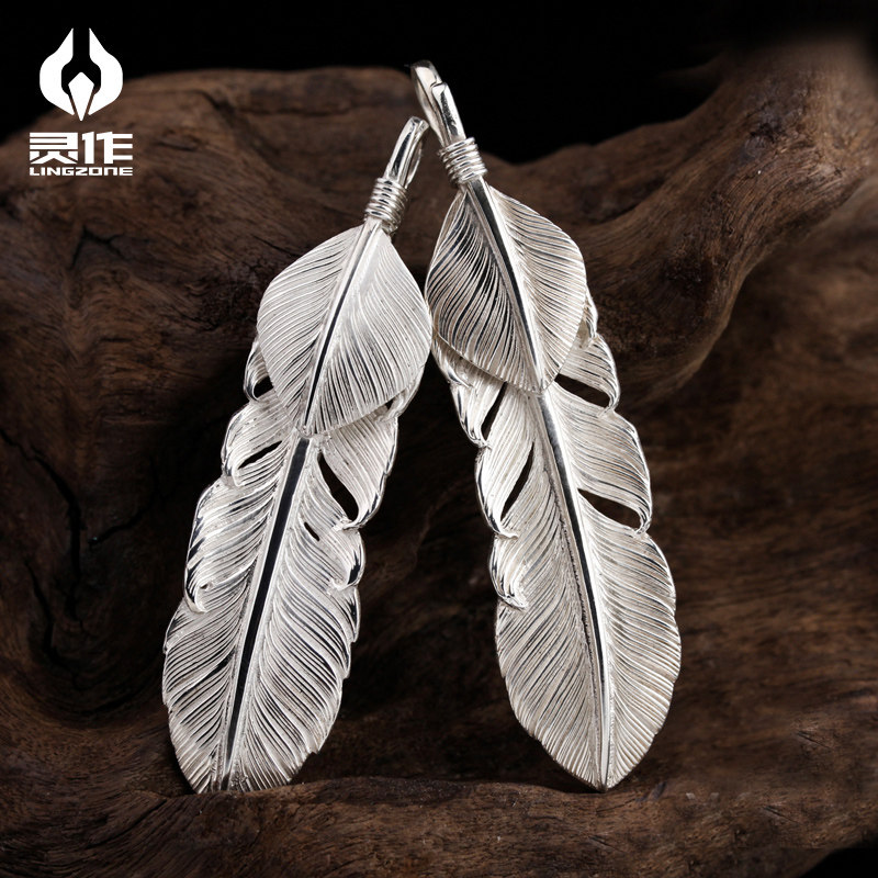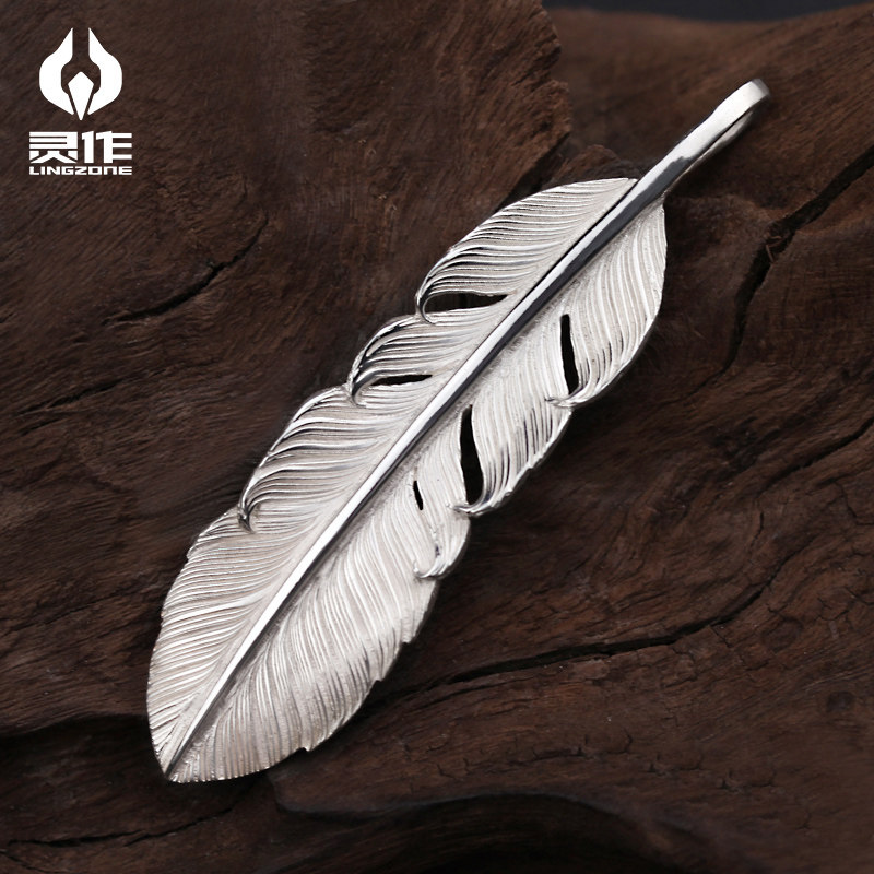 Ling Zuo Silver Jewelry Sterling Silver Feather Series Papa Bear Hand-made Precision Casting Personalized Fashion Pendant Necklace Pendant
