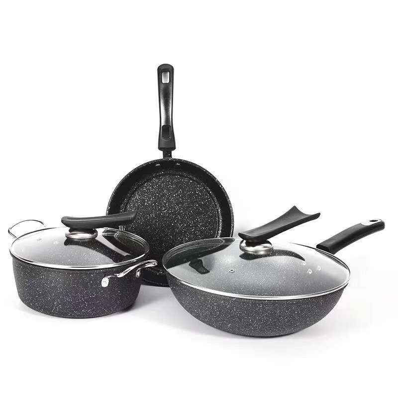 Romani three-piece set with 1 cover Demani three-piece set with 1 cover Maifan stone three-piece set with 2 covers Maifan stone frying pan