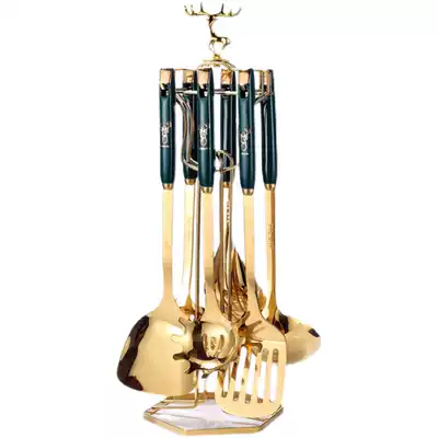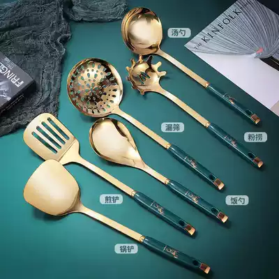 304 Full set of shovels and spoons Stainless steel household kitchen spatula pylons Ceramic anti-scalding handle cooking spoon Nordic style
