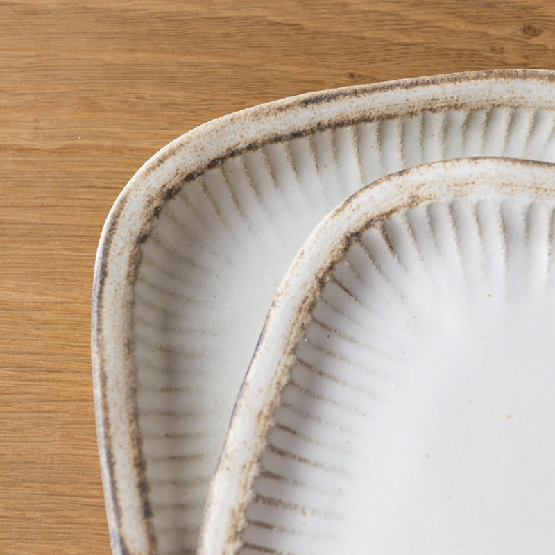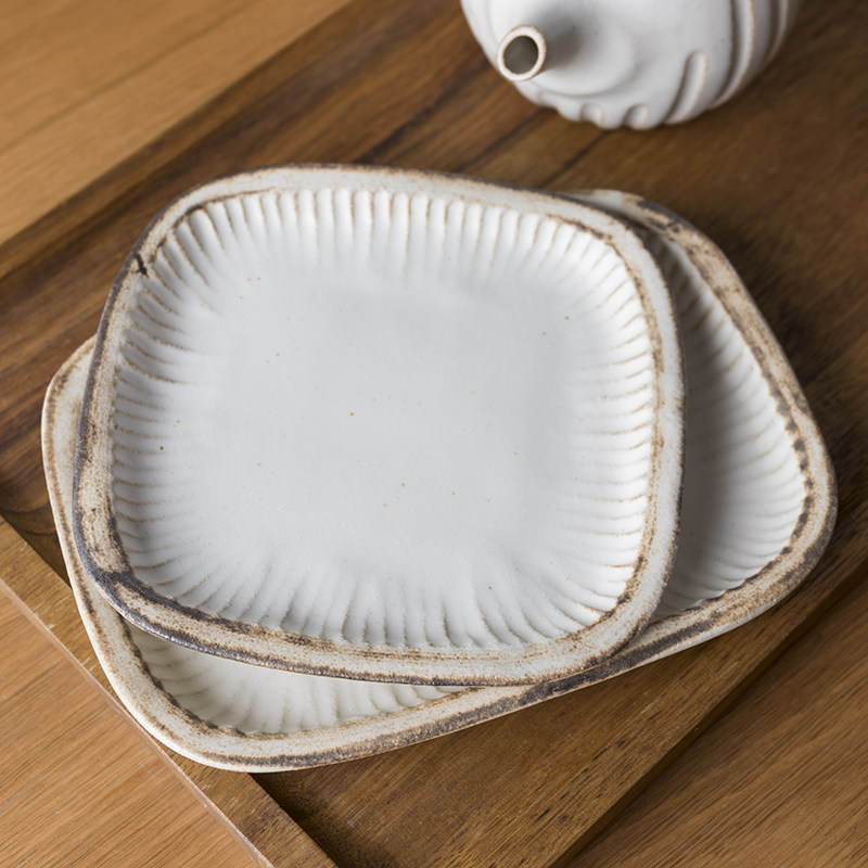 Okawakawa-cho Oshima Japanese original imported Yiko Aki-tai-chi rectangular crude ceramic dish retro-colored tableware