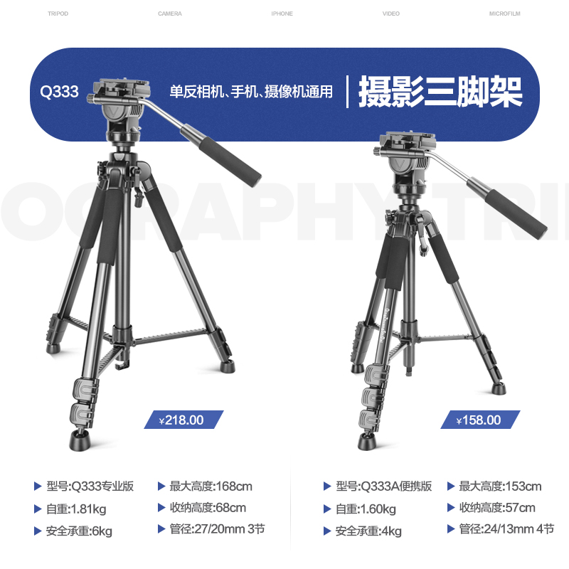 Light fitting era Q333 camera tripod single eye camera phone live hydraulic damping handle tripod head tripod