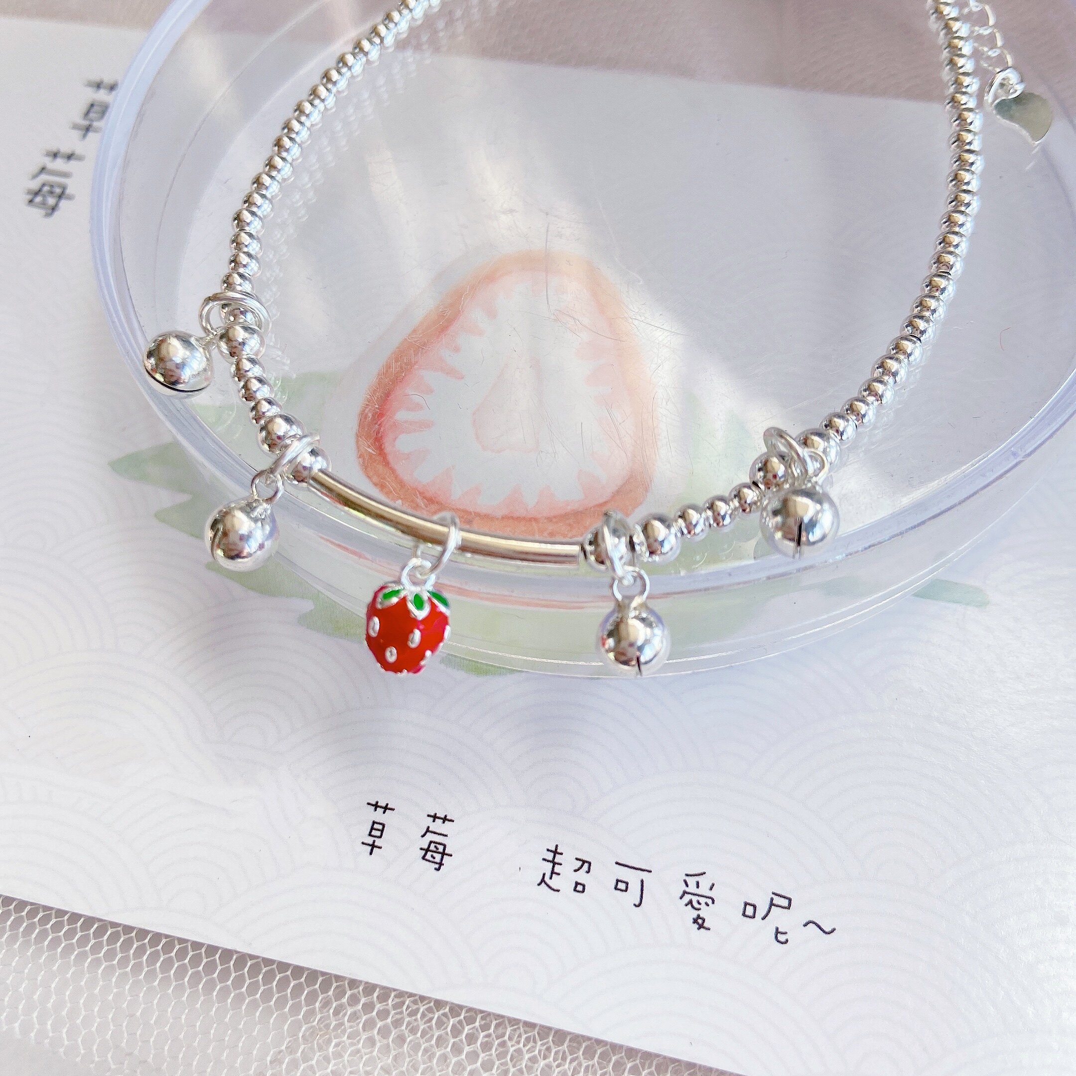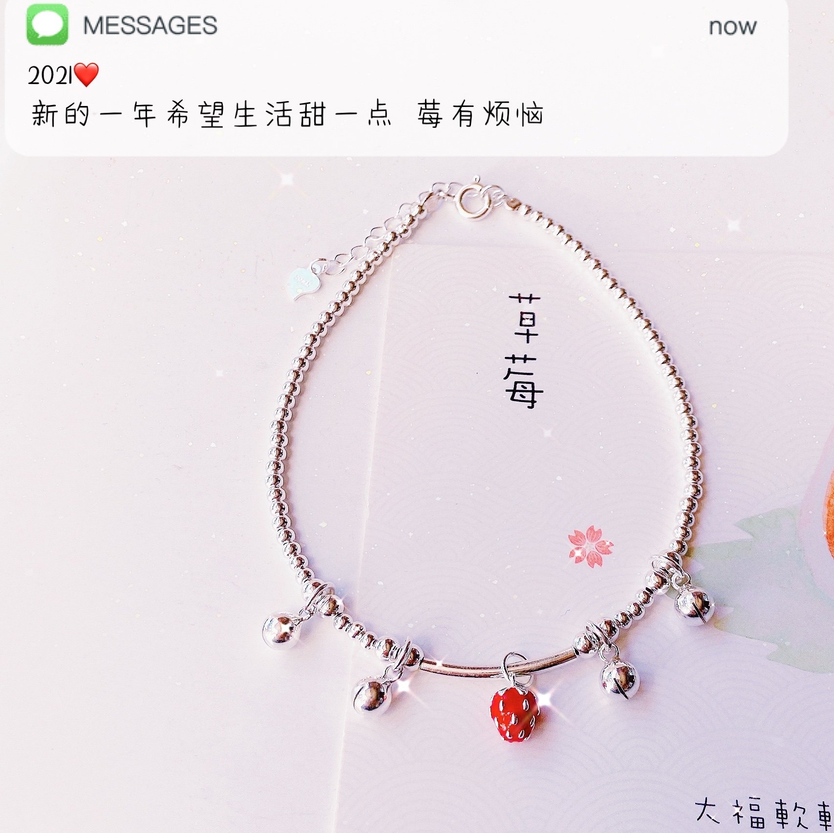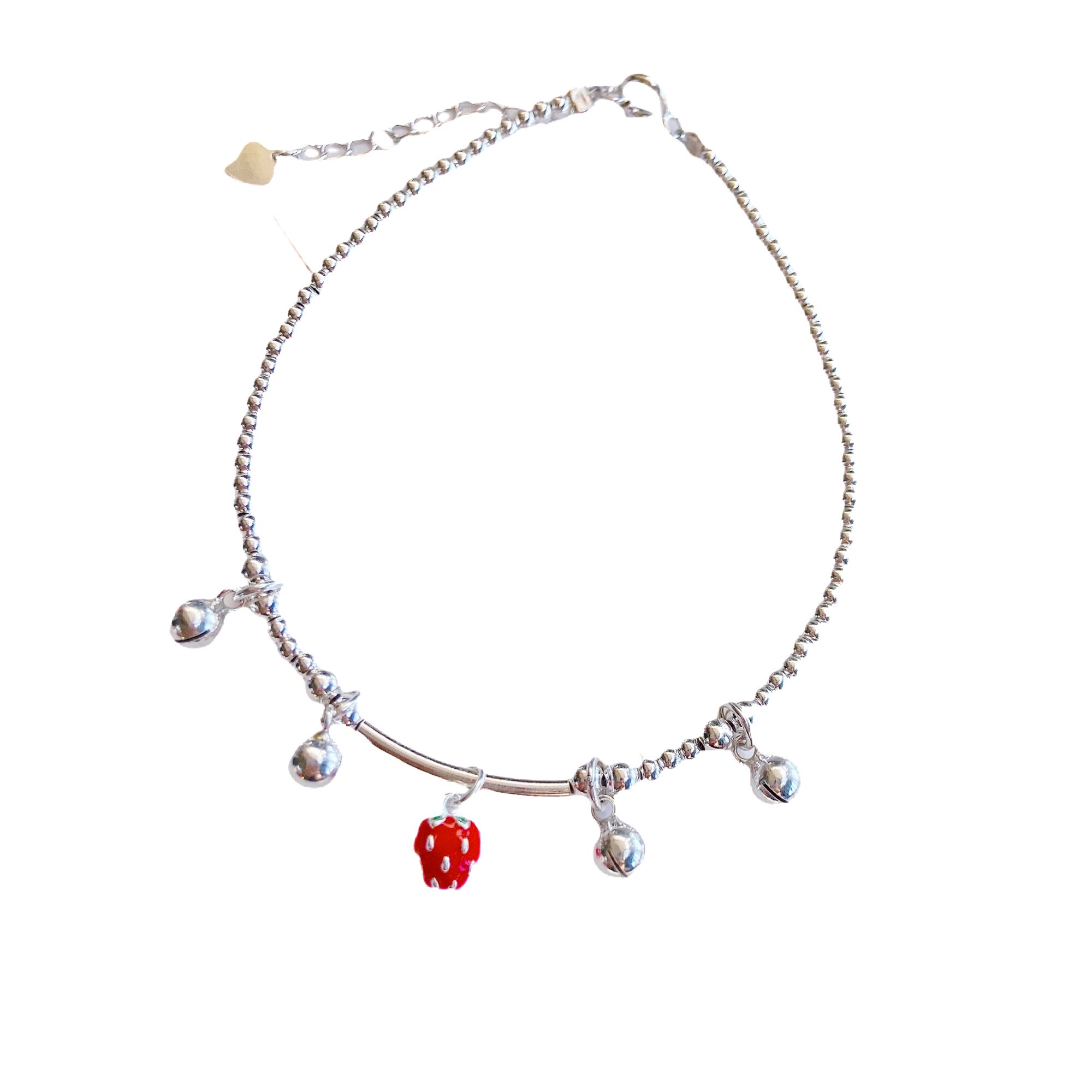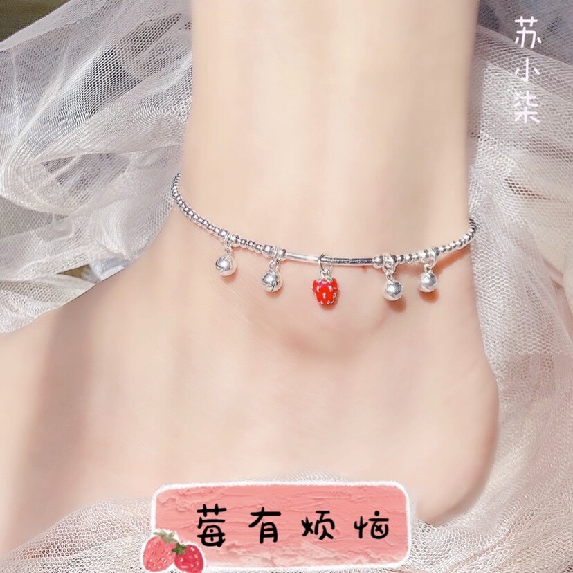 Jiangnan red small strawberry silver pearl foot chain pure silver will ring the bell foot chain bean bean 925 silver accessories foot ring female gift