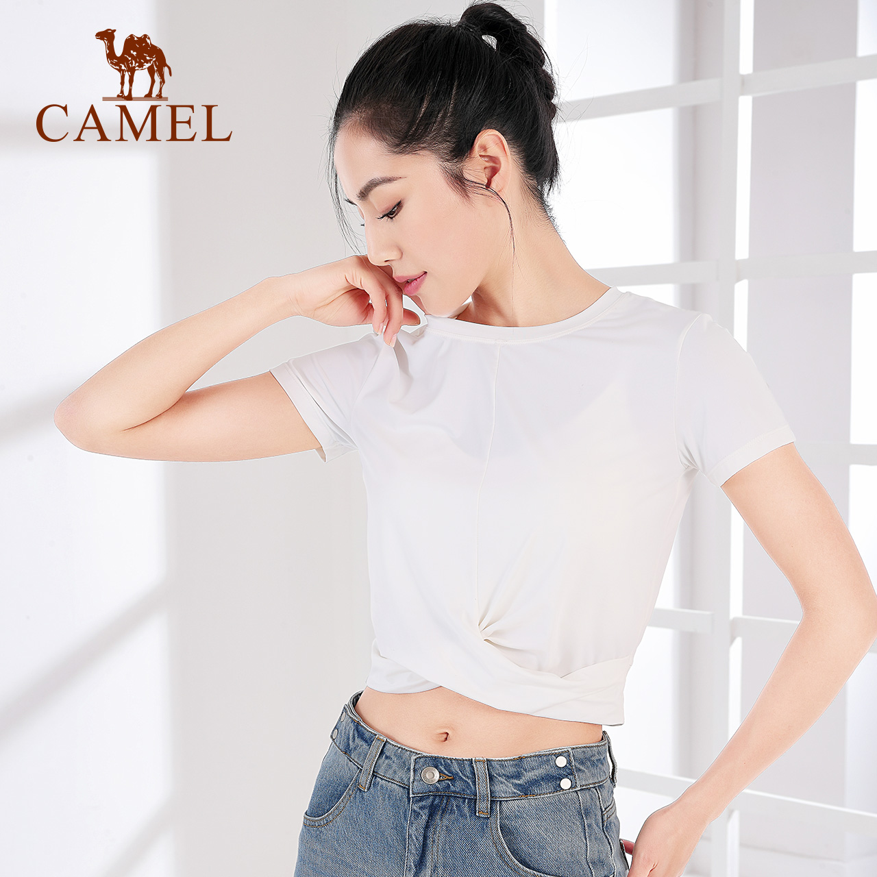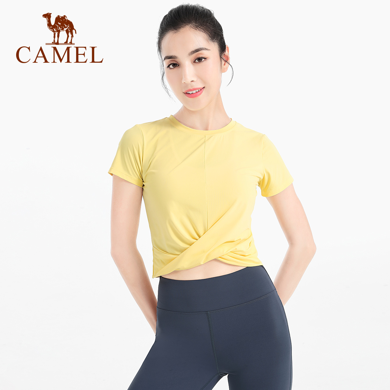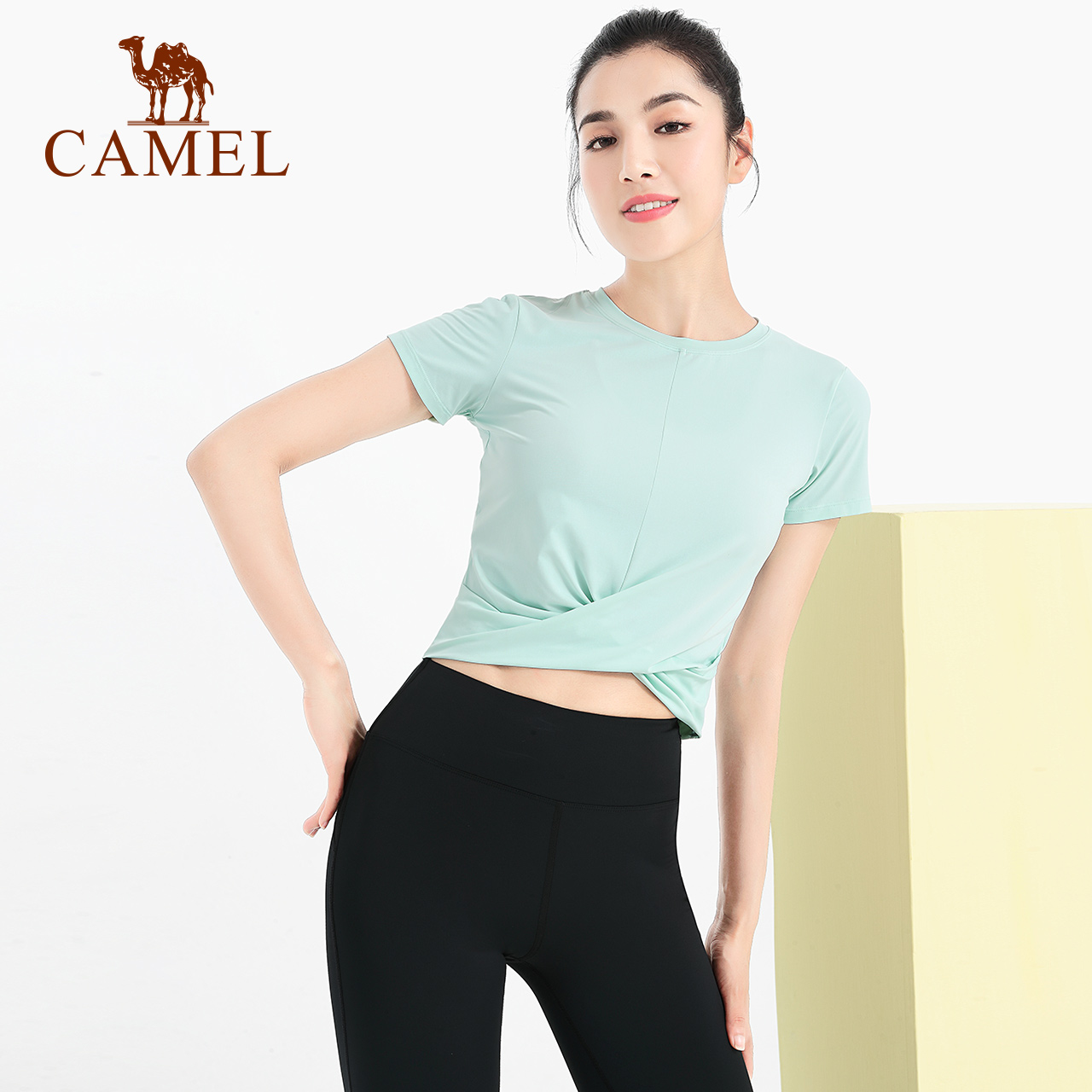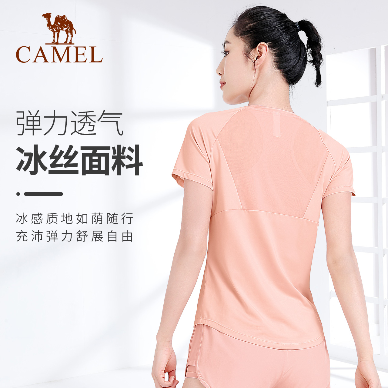 Camel yoga suit short sleeve summer T-shirt sports tops cropcord bare waist running tights net red fitness clothes fairy qi