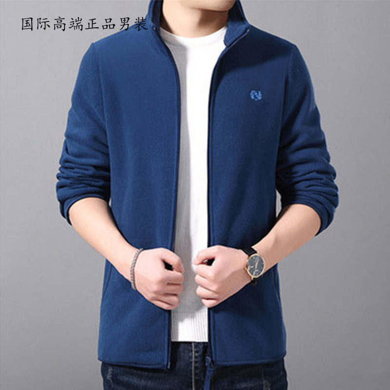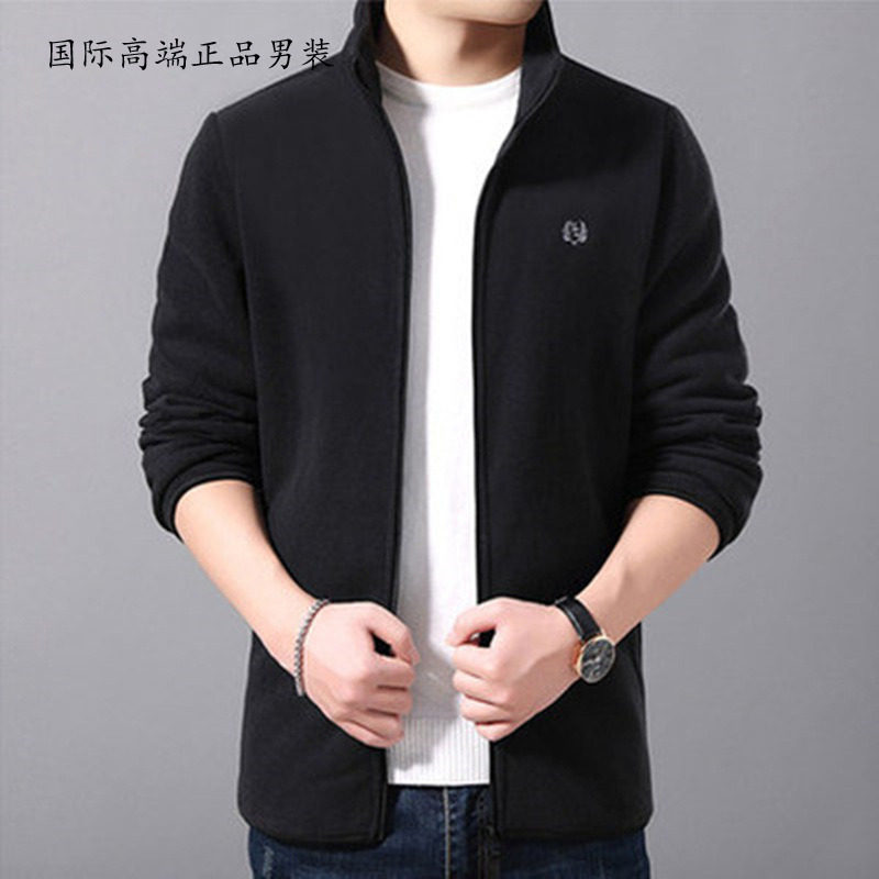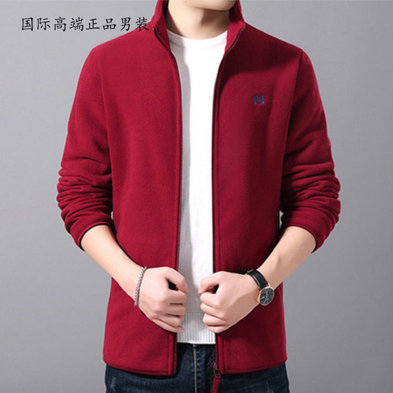 Polar fleece jacket men's autumn and winter slim high-end trend plus velvet padded fleece sweater men's stand collar jacket