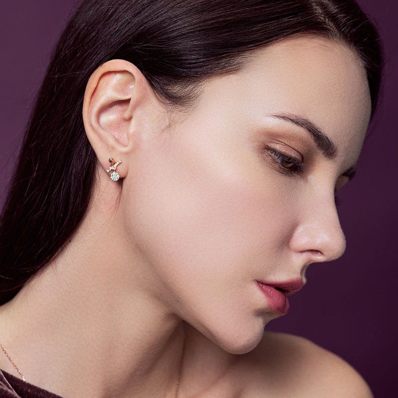 GiO jewelry small shede with natural diamond stud earrings earrings 18K rose gold color gold real diamond earrings women drop earrings