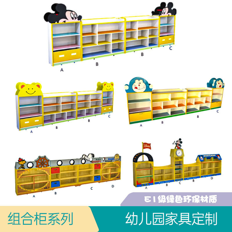Kindergarten Early Education Center Cartoon Toy Containing Cabinet Styling Composition Cabinet Fire Protection Plate Storage Maple Wood Textured Finishing Cabinet