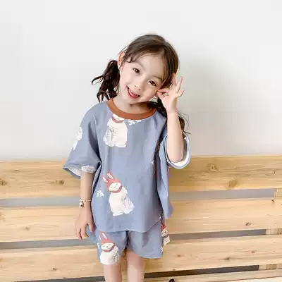 (Clearance, September 1st-September 30th) Girls Summer Short Sleeve Skin-friendly Pajamas Baby Children's Home Clothes