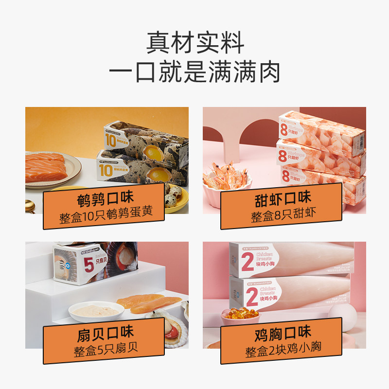 Chicken breast flavour (15g * 10pcs) 5 boxes scallop flavour (15g * 10pcs) 5 boxes sweet shrimp flavour (15g * 10pcs) 5 boxes quail egg yolk flavour (15g * 1pcs)