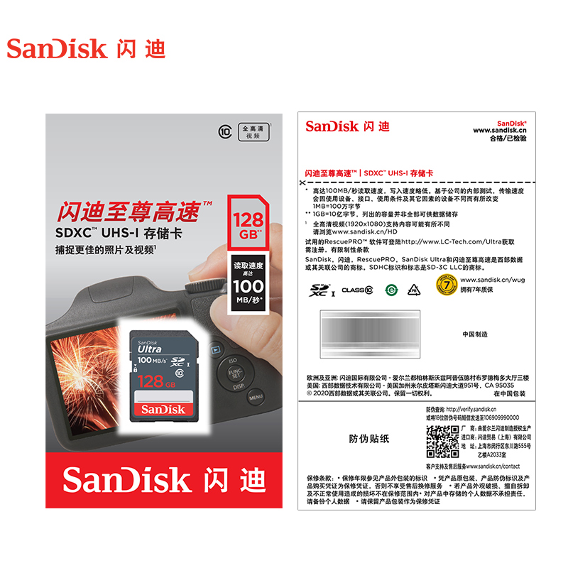 sandiskSanDisk to Zun High Speed SD Memory Card 128g Digital Single Eye Camera HD Memory Card SD Storage