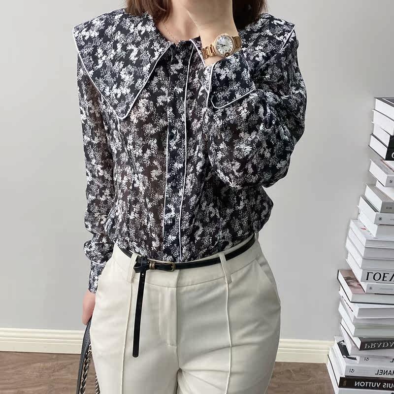 ChAO recommends a shirt-less-age foreign printed navy collar shirt retro 100 hitch long sleeve shirt