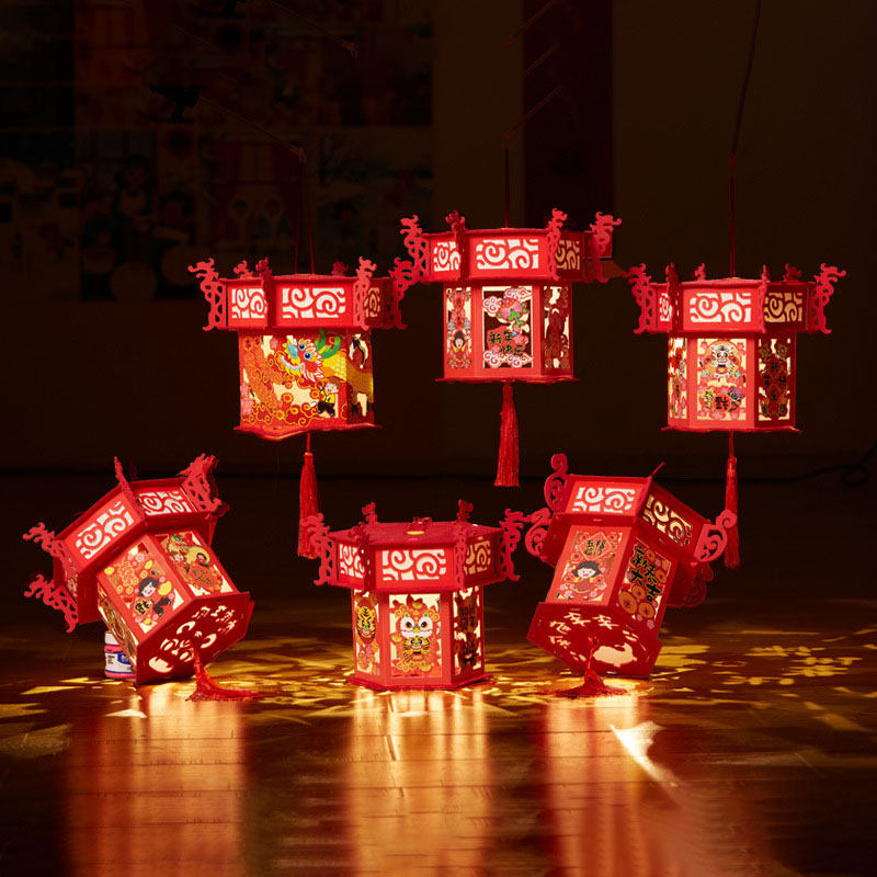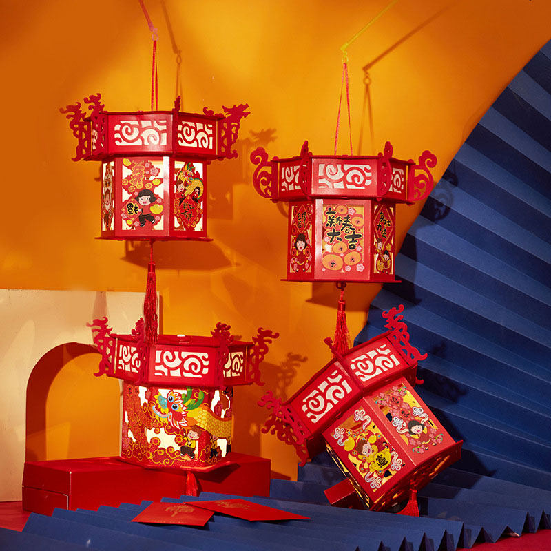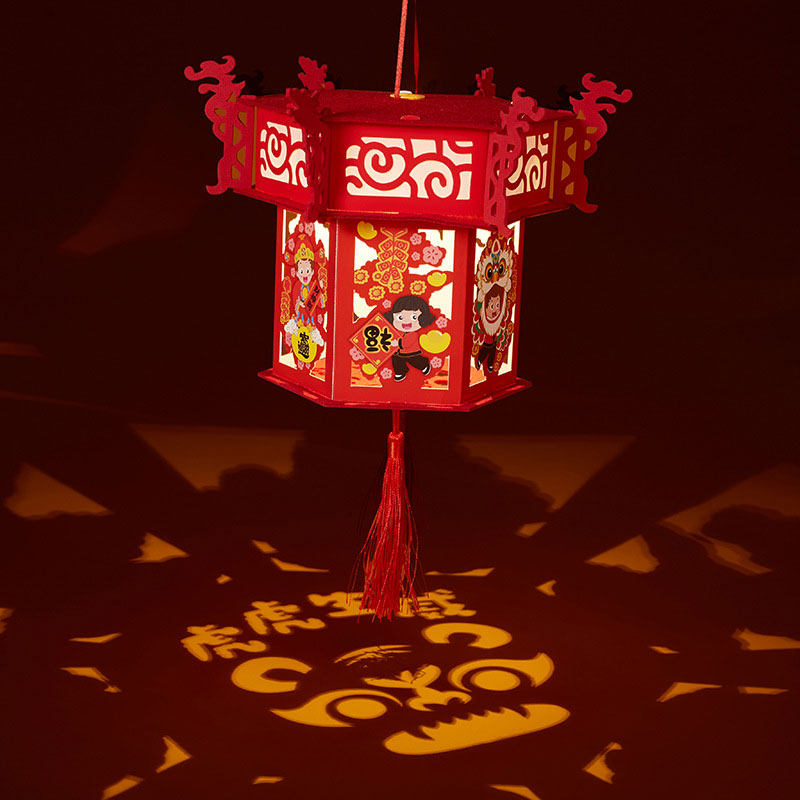 Lantern Festival children's hand-held lantern ornaments the Year of the Tiger diy handmade material package projector walk kerosene lamp cartoon tiger lantern