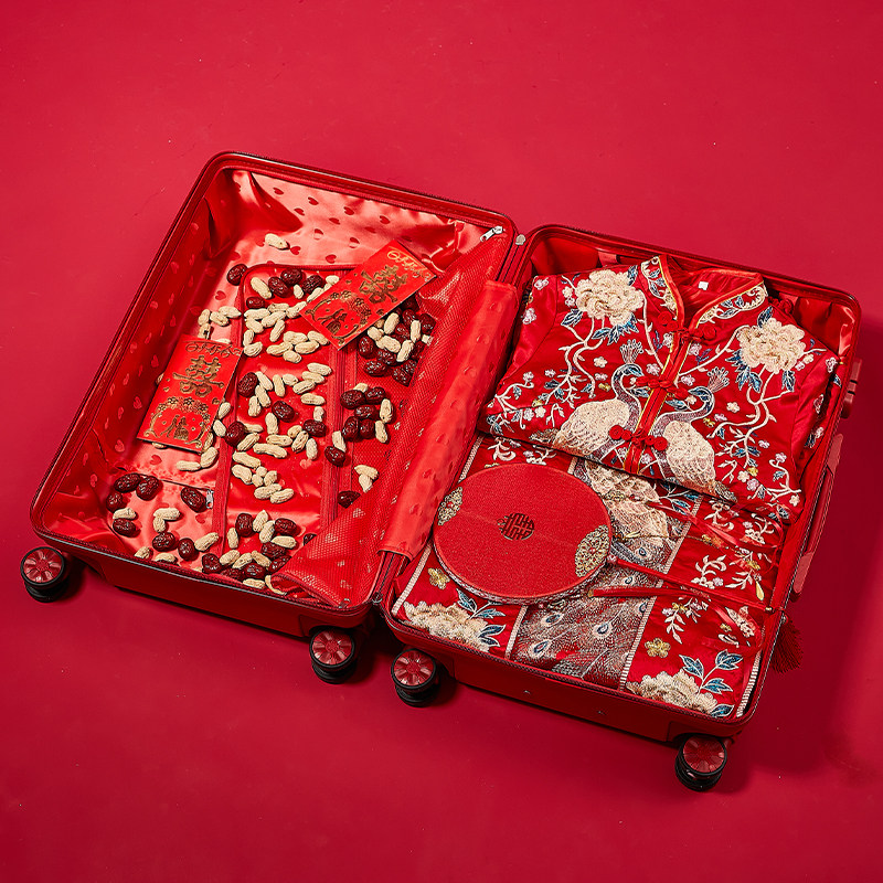Bride red dowry suitcase 24 inch universal wheel durable trolley case 26 inch wedding suitcase dowry box pair