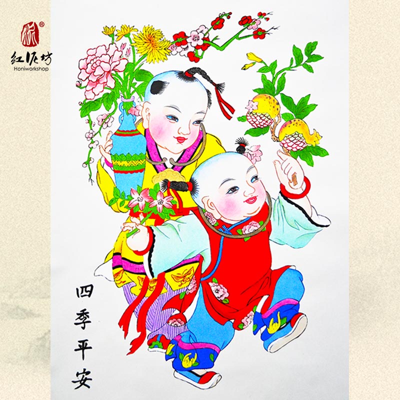 Tianjin Yangliuqing Handpainted Year Painted Four Seasons Ping An Business Gift Conference Gift to send customers to send friends Joe to