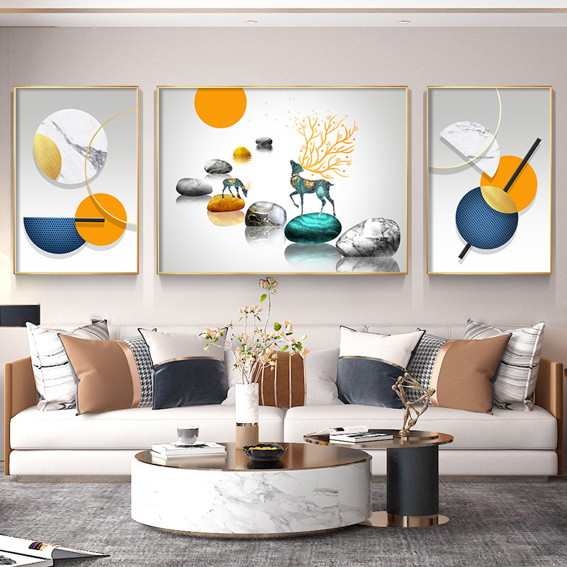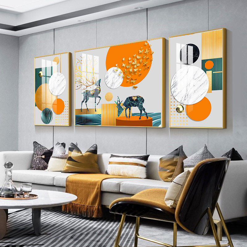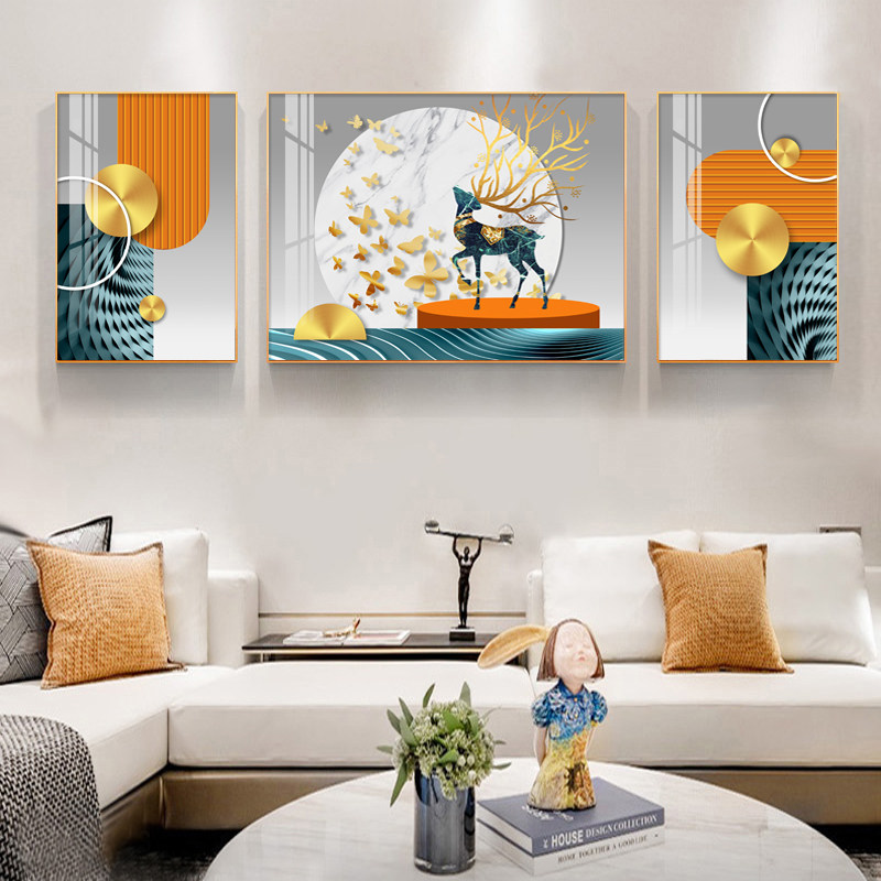 Light luxury living room decoration painting sofa background wall painting triple high-end atmospheric abstract hanging painting crystal porcelain diamond wall painting