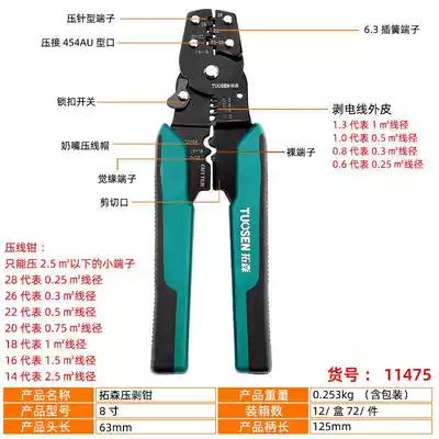 Topson crimping pliers multi-function crimping cap bare terminal crimping pliers insulated wire stripping pliers cold pressing electrical terminal pliers