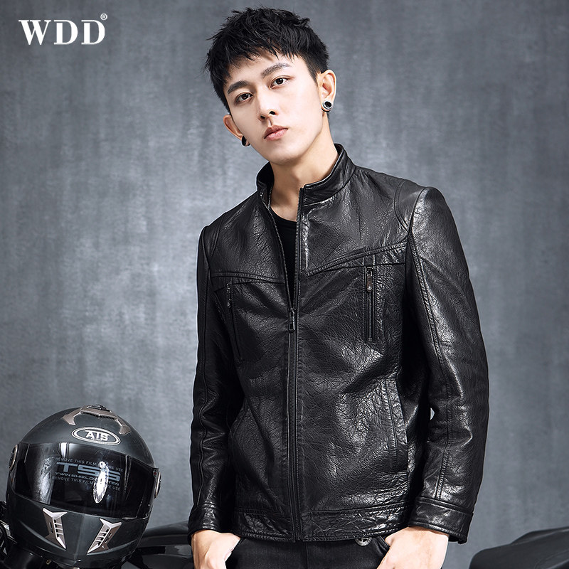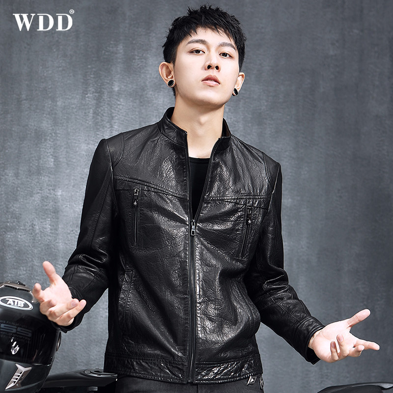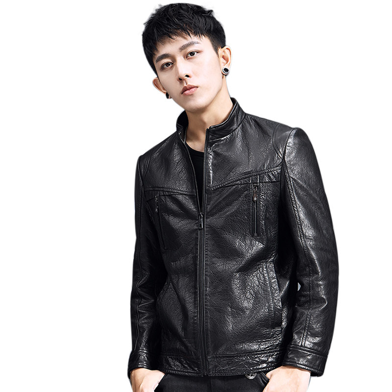 2020 new Henning men's leather leather clothing stand short sheep leather black handsome gas single leather jacket tide jacket