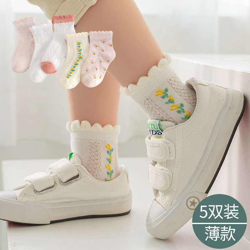 Girl Socks Children Socks Spring Autumn Spring Summer Slim pure cotton baby mesh Breathable Princess Pink Lace Socks