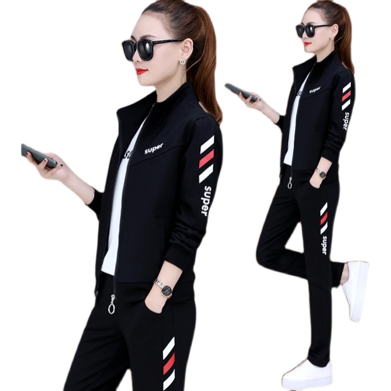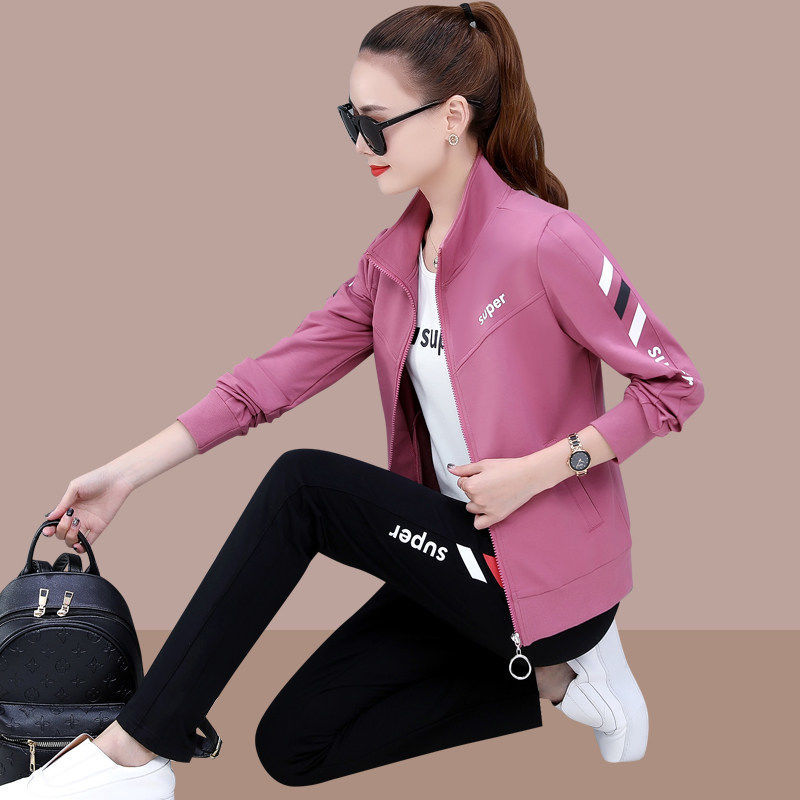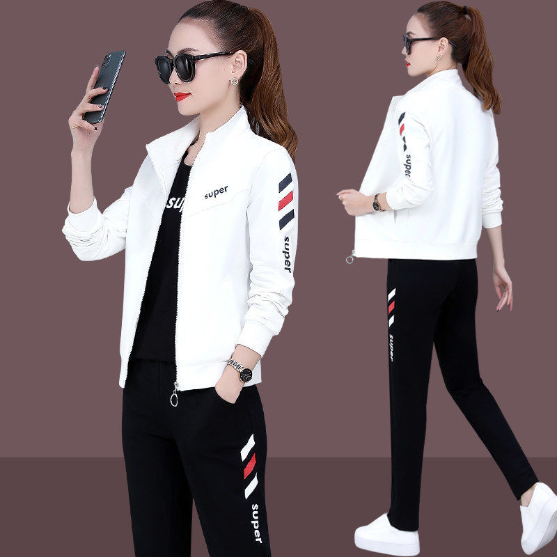 Fashion Western-style casual wear sports suit women's three-piece set 2021 spring and autumn new large size women's running sweater