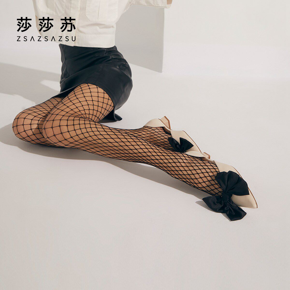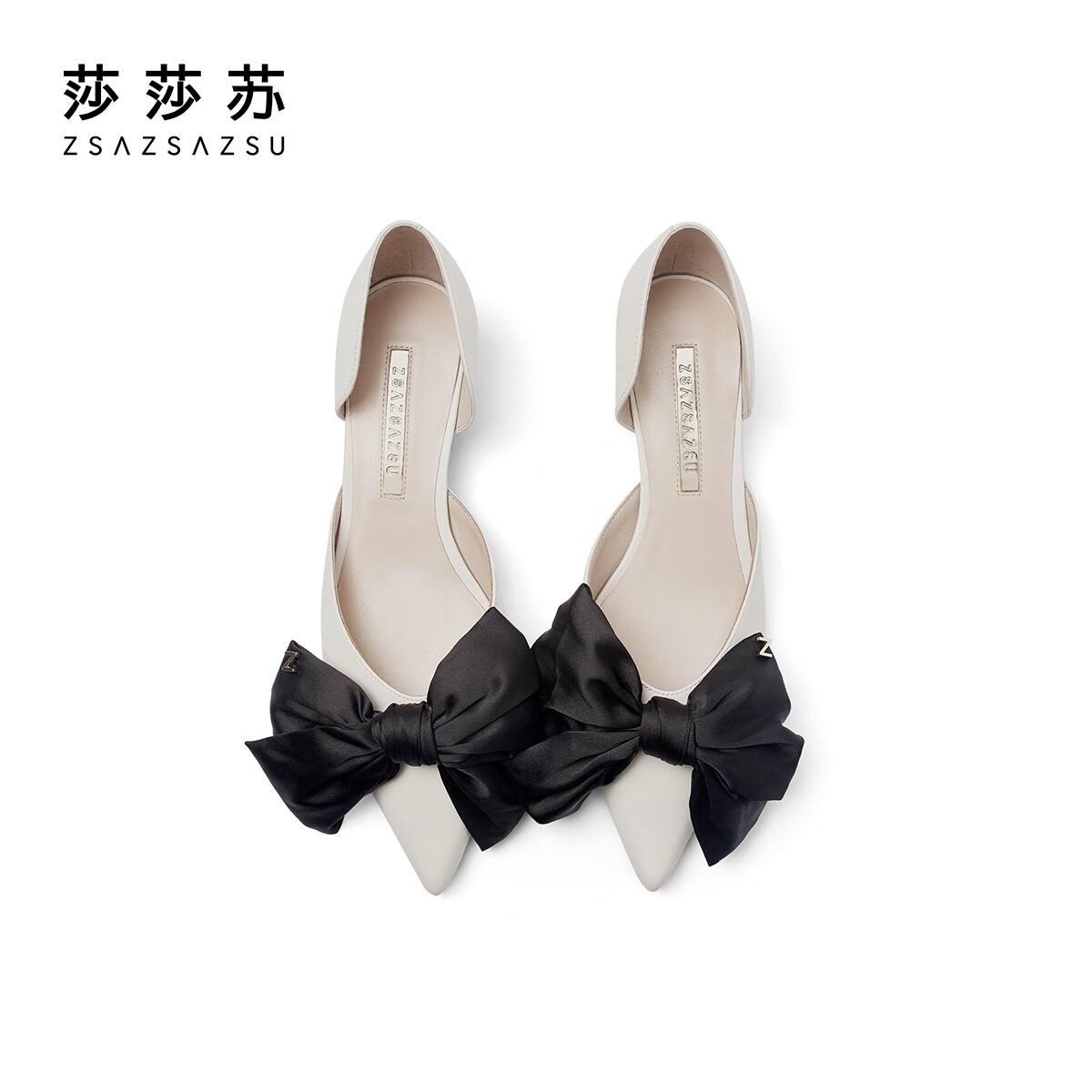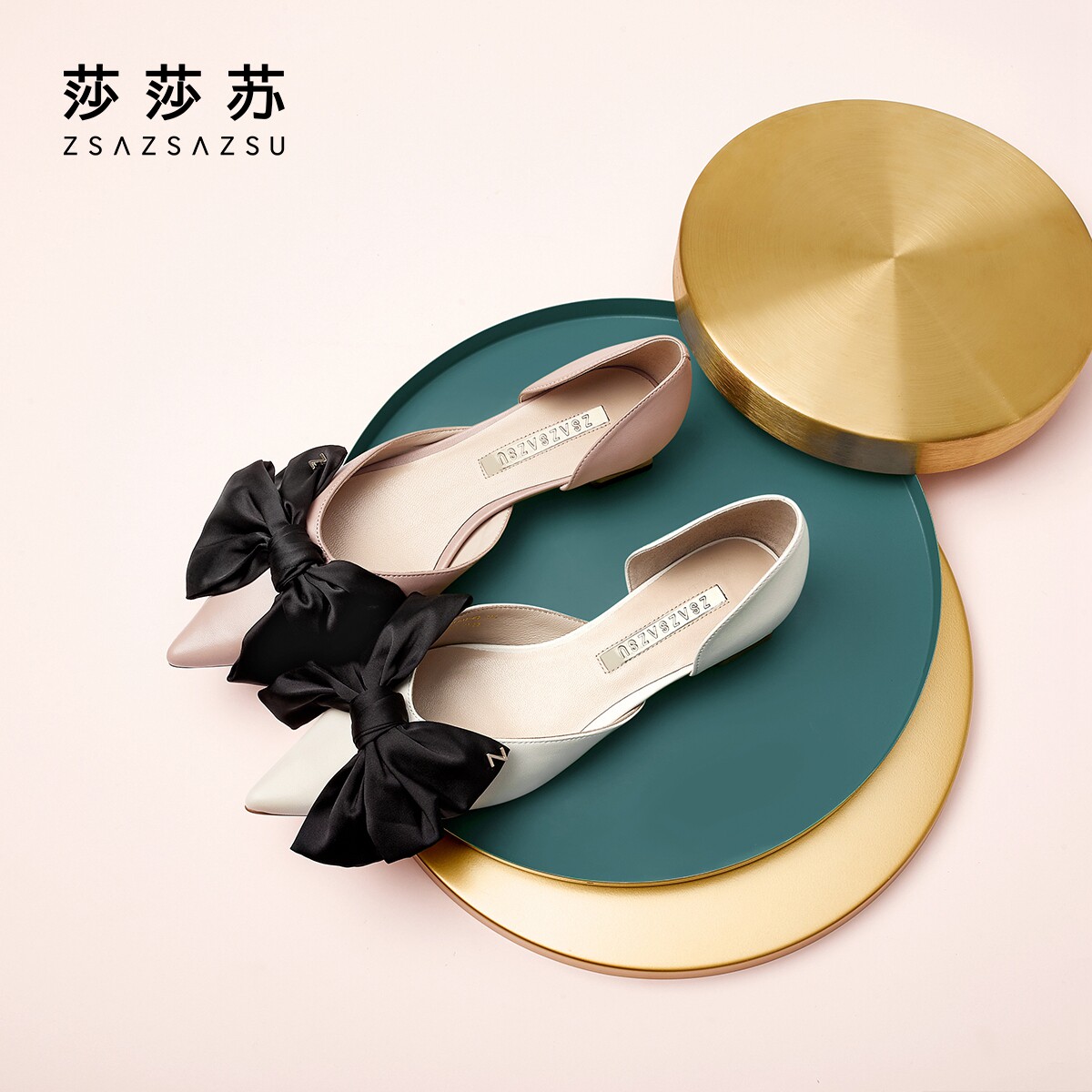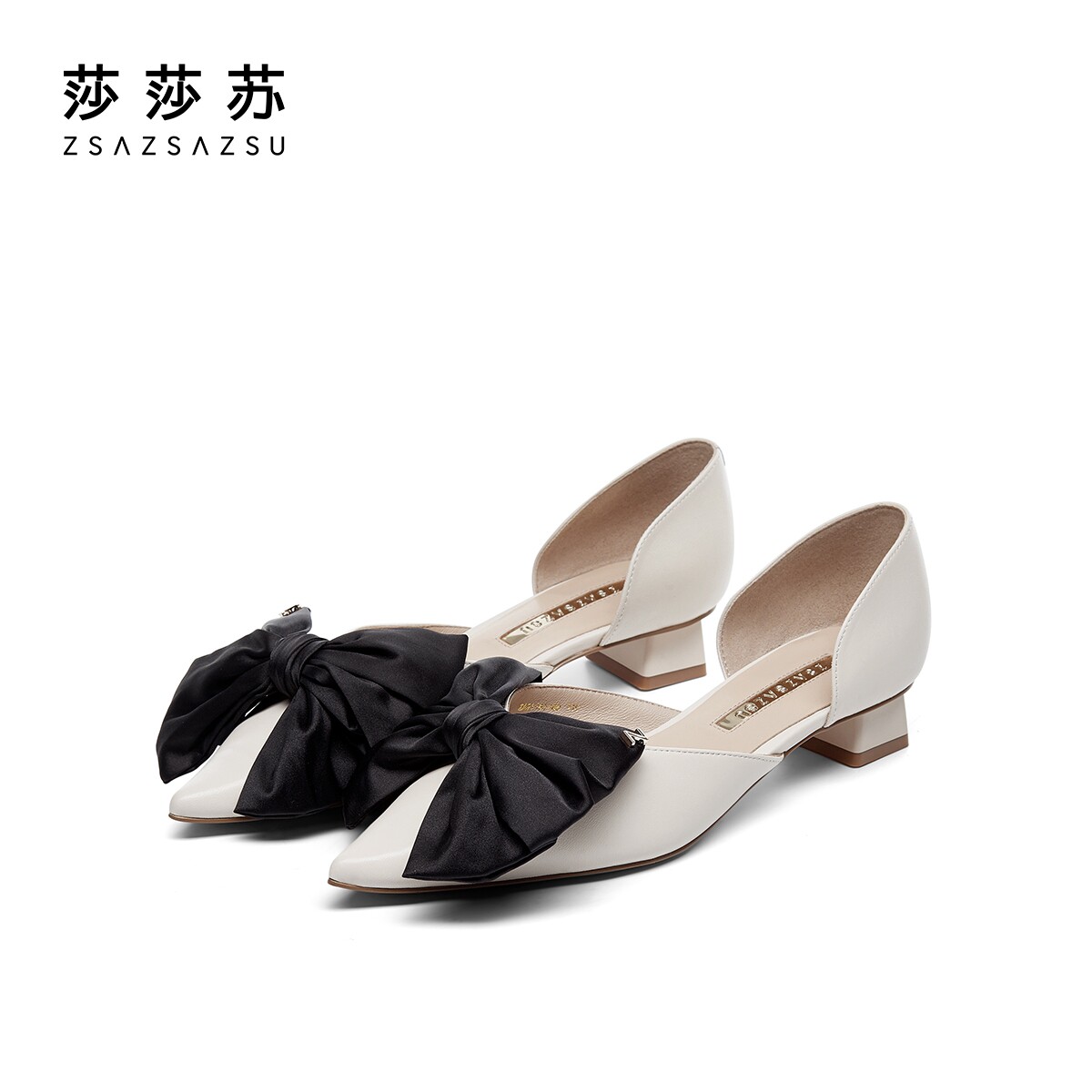 Salsa Su's escape princess series spring new medium thick heel bow pointed bag shoes women's slip-on flat shoes