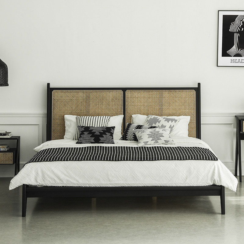 Light luxury solid wood bedroom rattan ash wood frame bed modern minimalist classic original design hotel homestay style