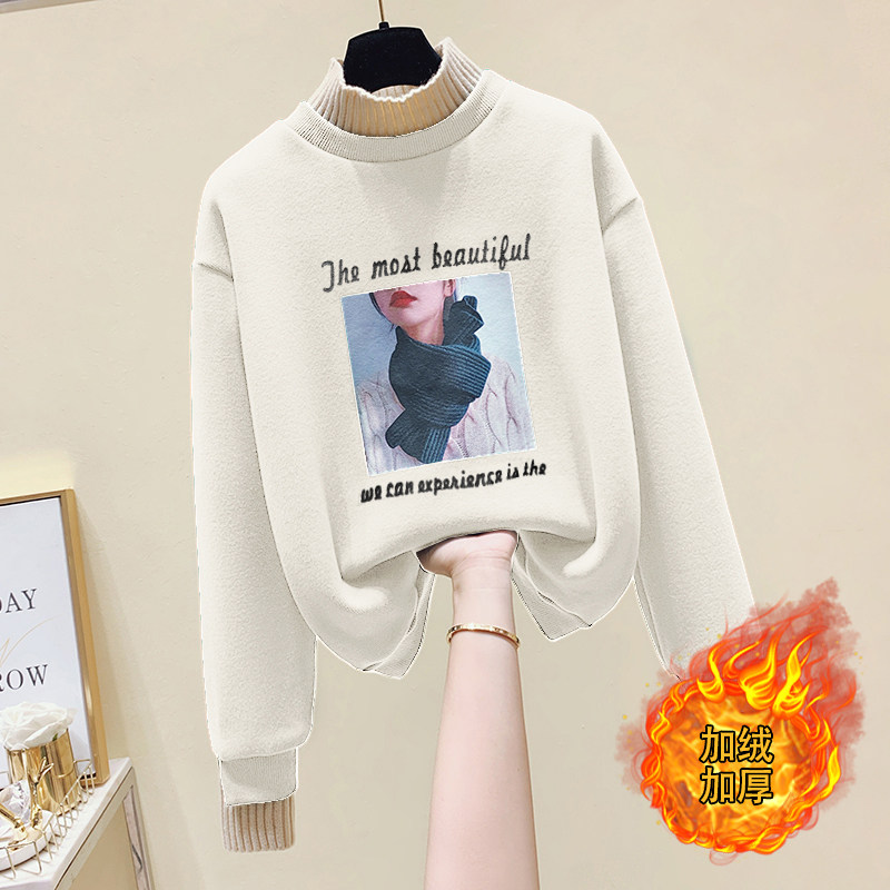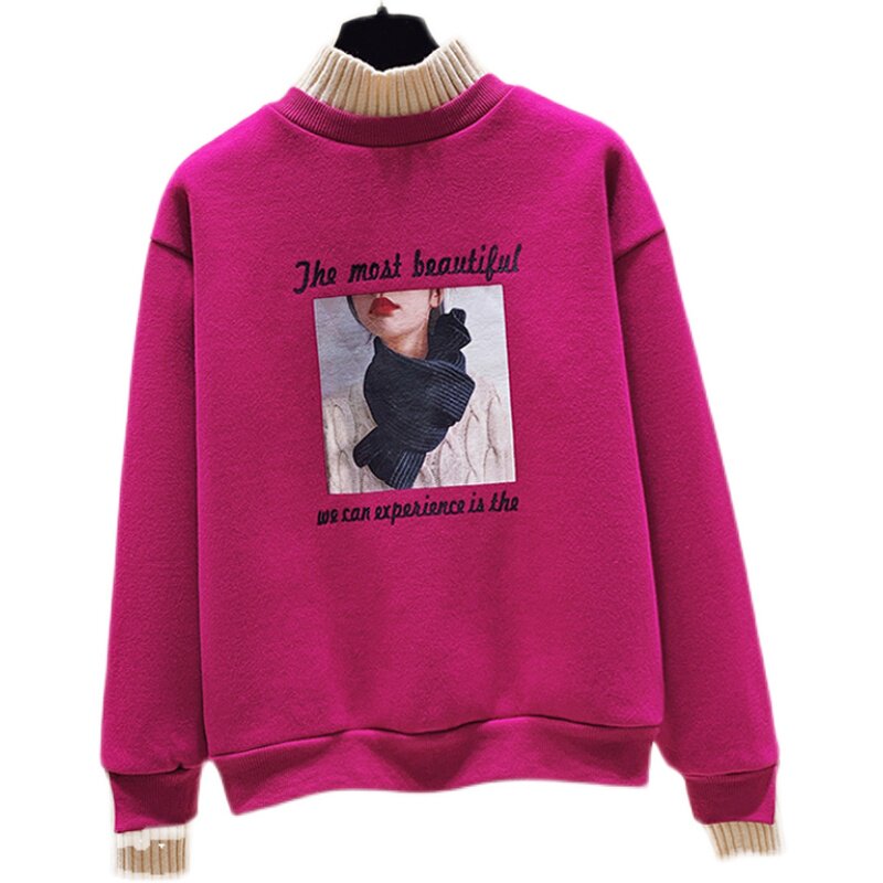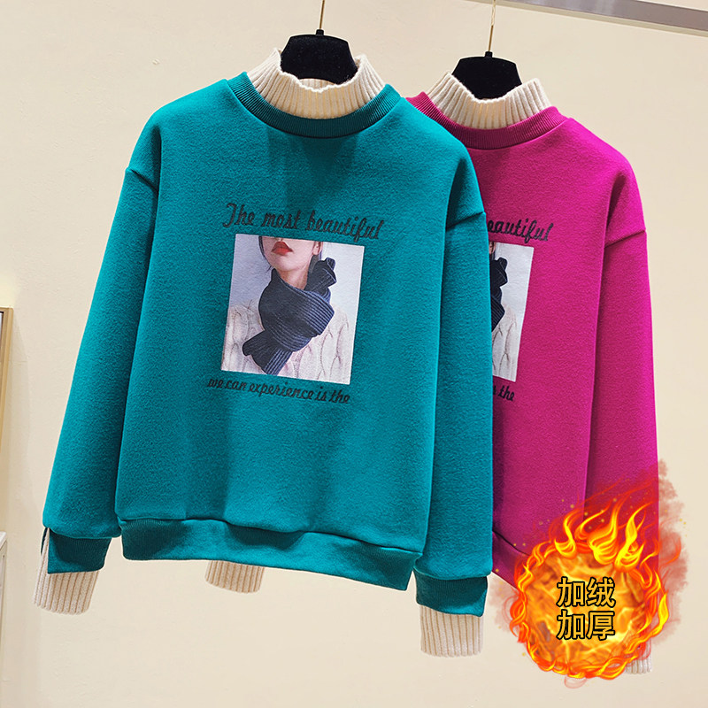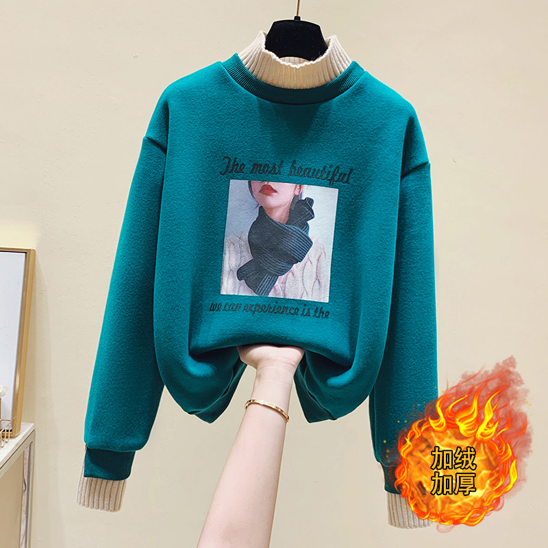 European station semi-high collar sweater women autumn and winter plus velvet thickened 2021 New loose hats big size jacket pullover