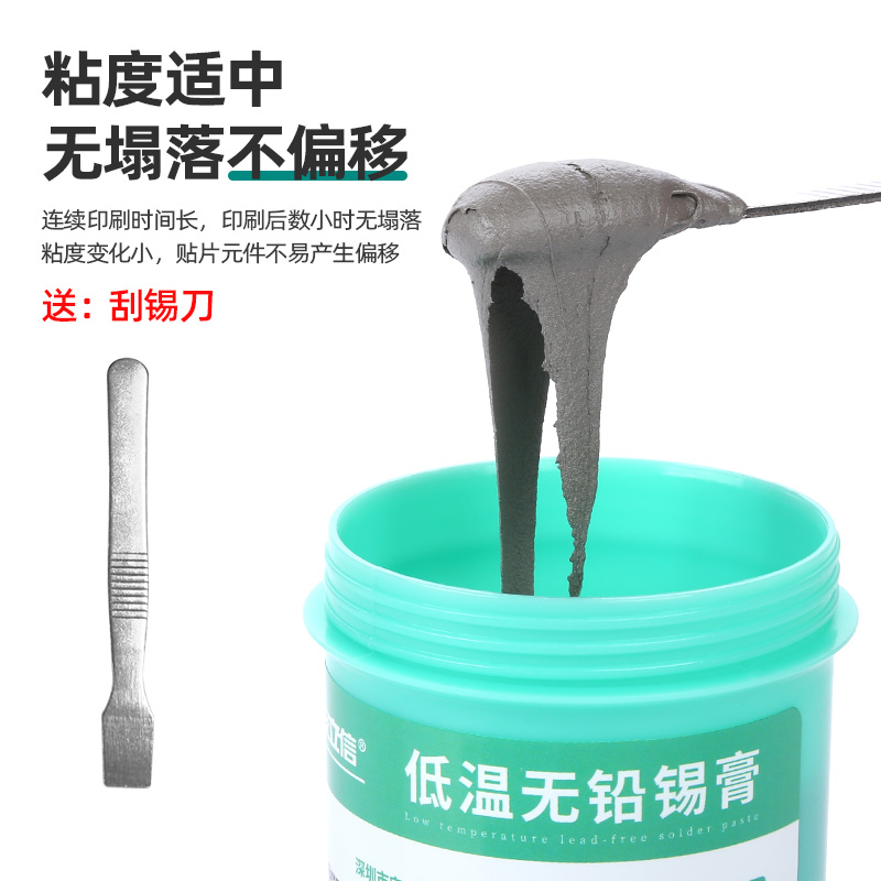 183°C medium temperature leaded solder paste 50G cans (commonly used) (sending solder scraper) 183 °C medium temperature leaded solder paste 100G cans (commonly used models) (sending solder knives) 183 °C medium temperature leaded solder paste 500G cans (commonly used models) (sending solder knives) 138 °C low temperature lead-free solder paste 50G cans (sending solder scrapers) 138 °C low temperature lead-free solder paste 500G cans (sending solder knives) 227 °C high temperature lead-free solder paste 50G cans (sending solder scrapers) 227°C high temperature lead-free solder paste 100G can (solder scraper) 227°C high temperature lead-free solder paste 500G can (solder scraper)