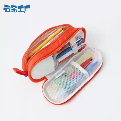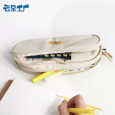 Cloud factory small yellow face rounded double-layer pen bag Large capacity multi-function simple oversized zipper stationery box for students