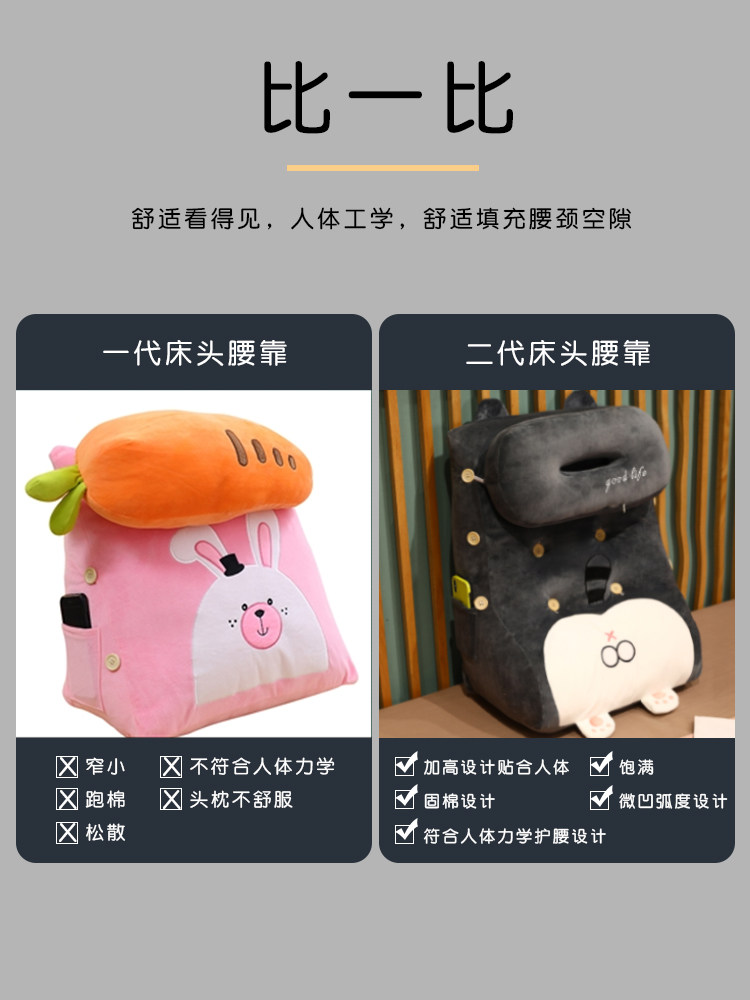 Lean Pillow Bedside Dorm Room Student Large Backrest Cushions Soft Bag Play Mobile Phone Care Waist Bedroom Bed Knock-down Wash