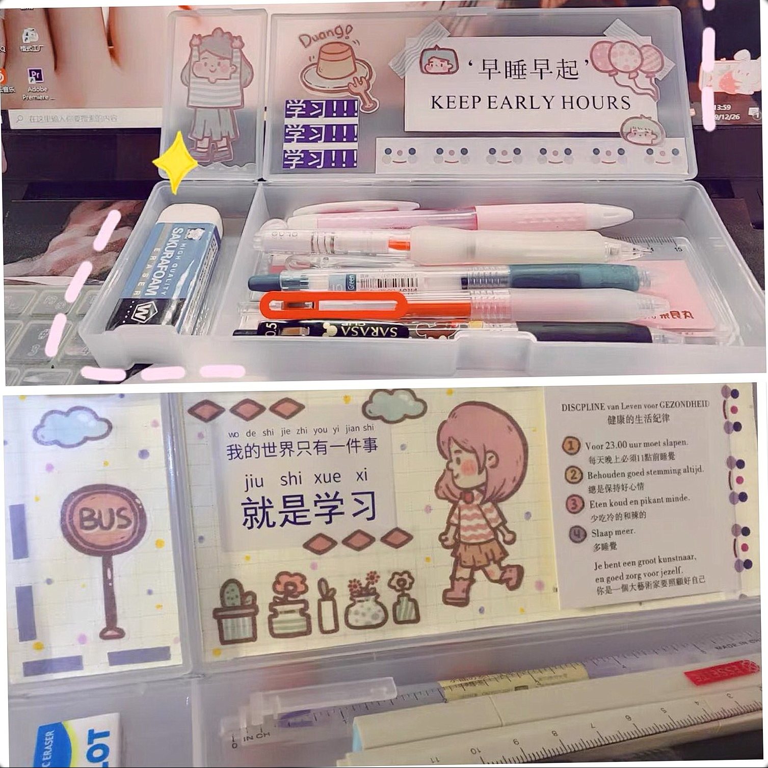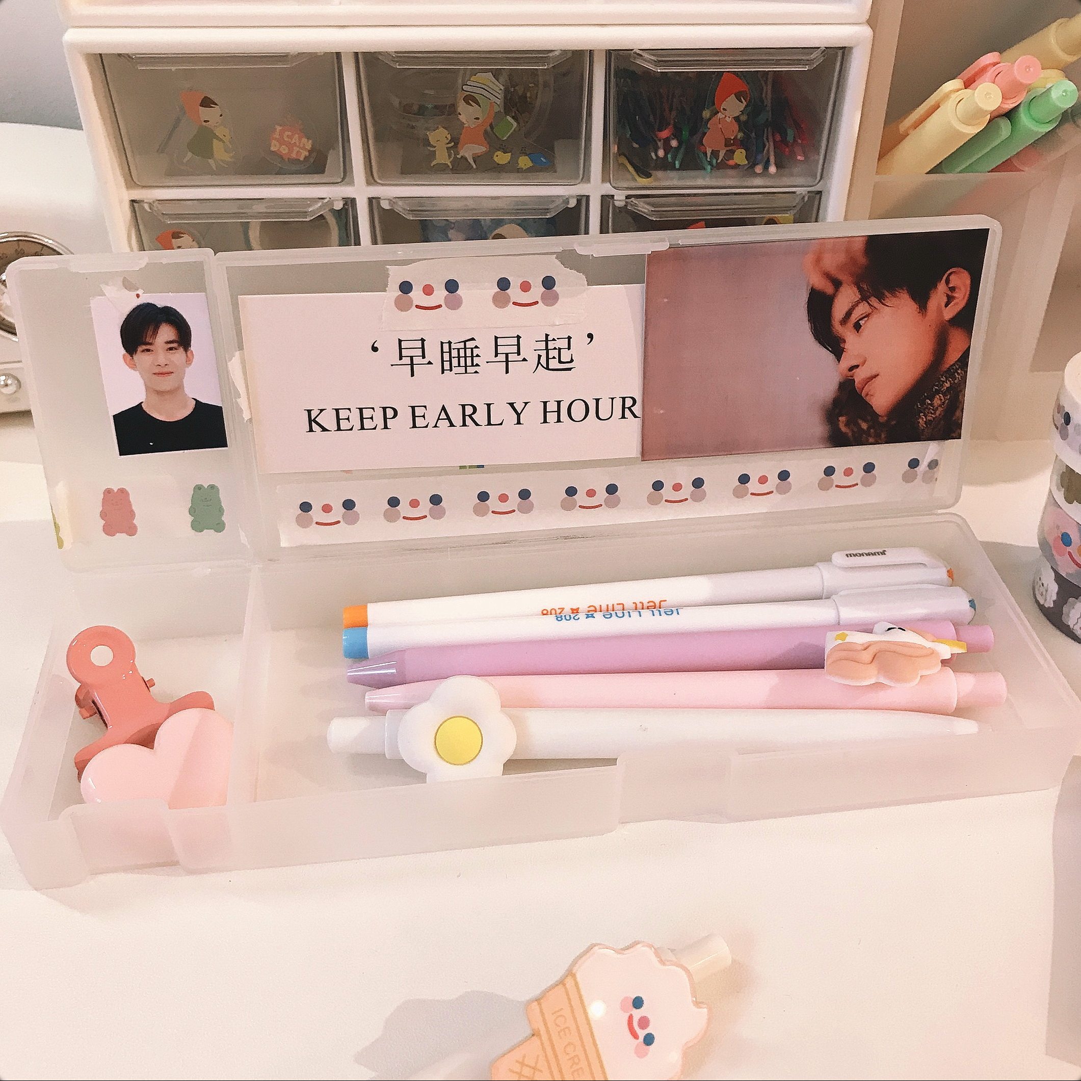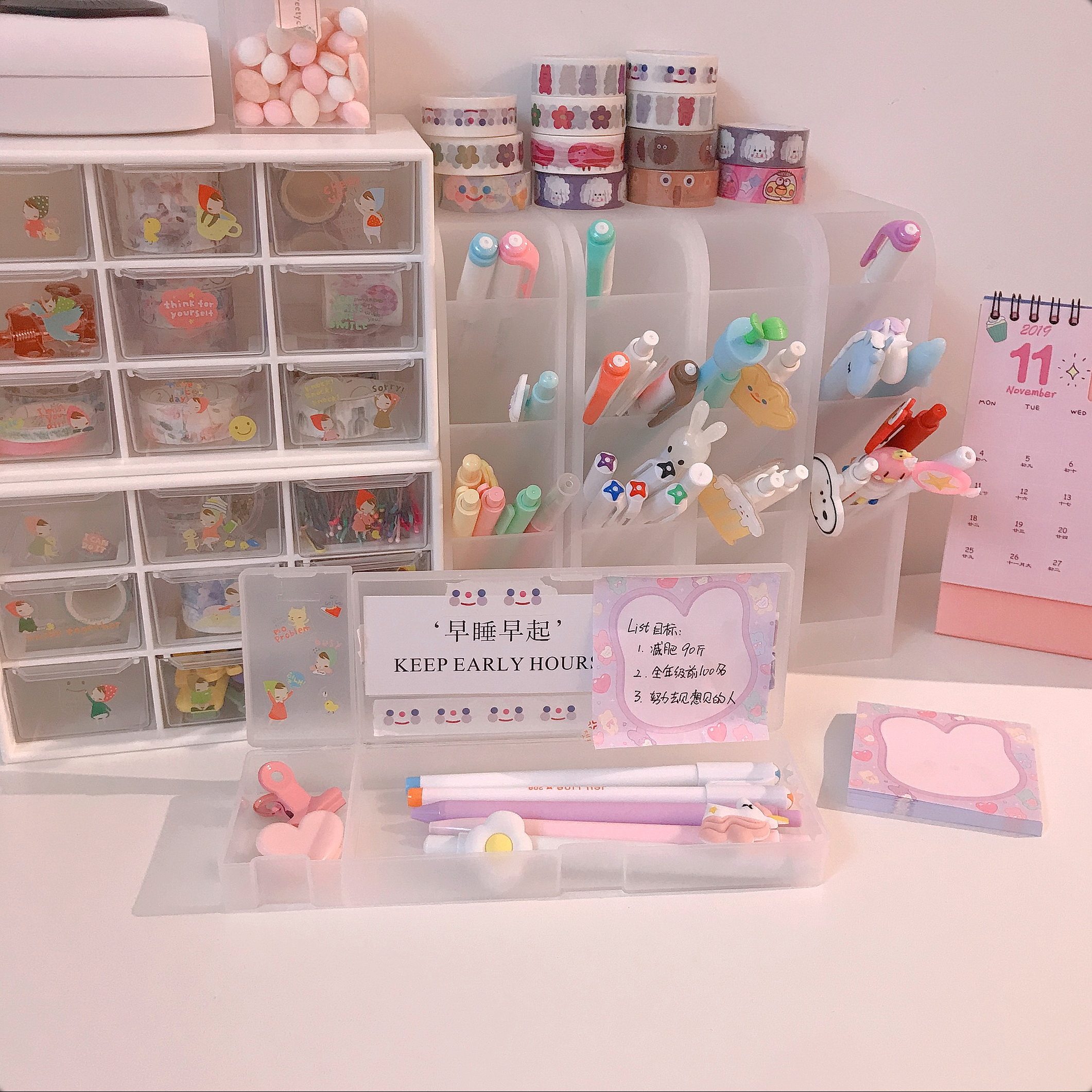 Girl heart screening room ins wind two frosted pen box can DIY their own translucent student simple stationery box