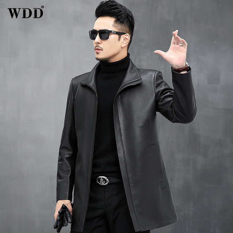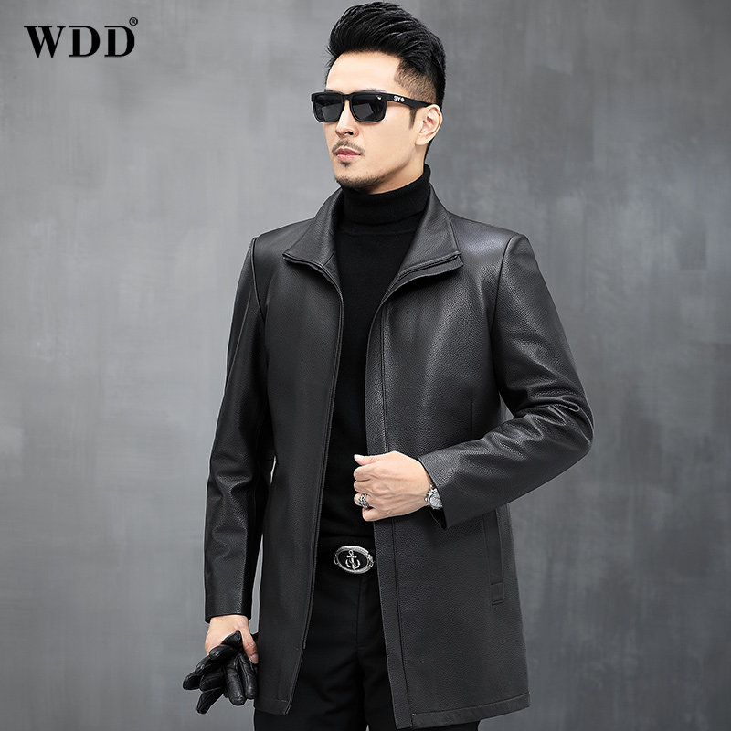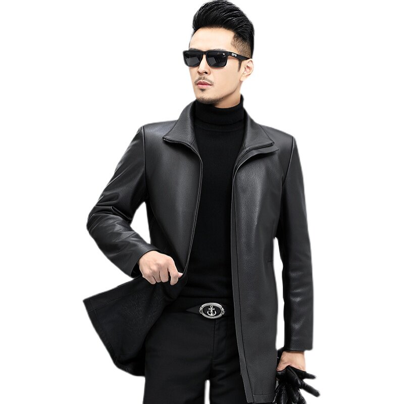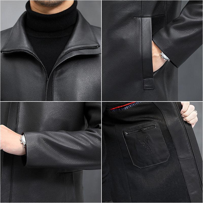 Authentic deerskin leather jacket men's mid-length Haining leather jacket lapel windbreaker middle-aged and elderly thin autumn and winter coat