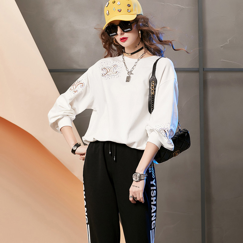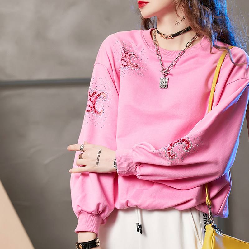 European station sweater women's design sense niche 2022 new spring letter hot drill hollow small loose top