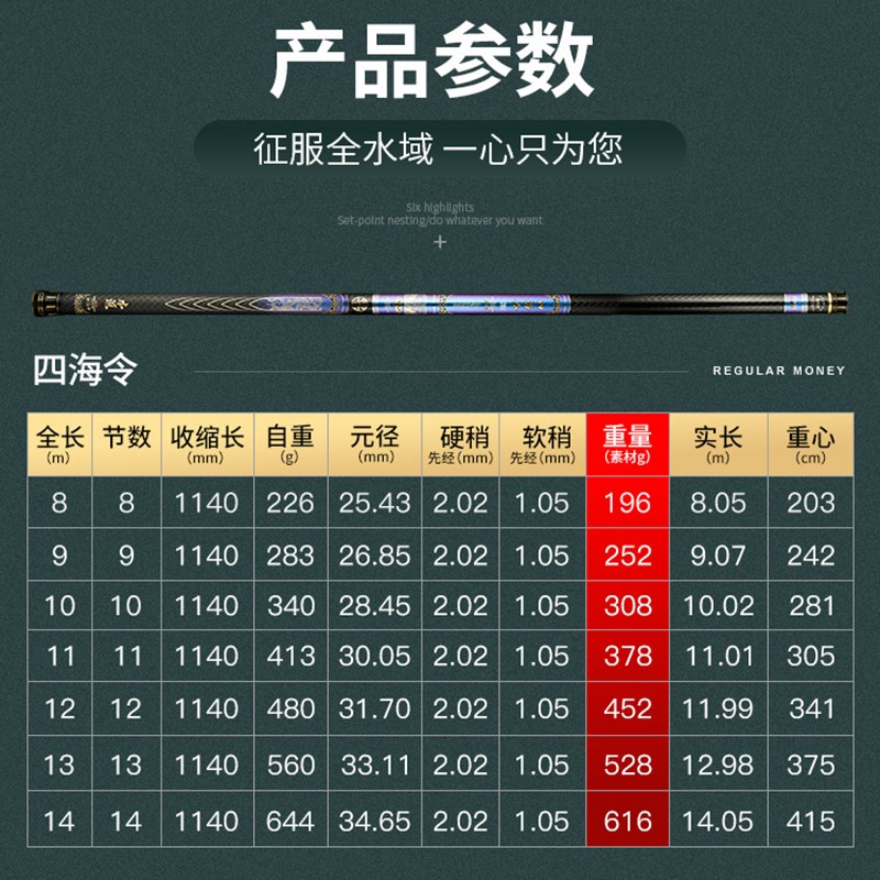 Four Seas Order 8 meters + hard slightly + first two sections + rod pack Four sea order 9 meters + hard slightly + first two sections + pole pack Four sea order 10 meters + hard slightly + first two sections + pole pack Four sea order 11 meters + hard slightly + first two sections + rod pack Four sea order 12 meters + hard slightly + first two sections + pole pack Four sea order 13 meters + hard slightly + first two sections + pole pack Four sea order 14 meters + hard slightly + first two sections + pole bag